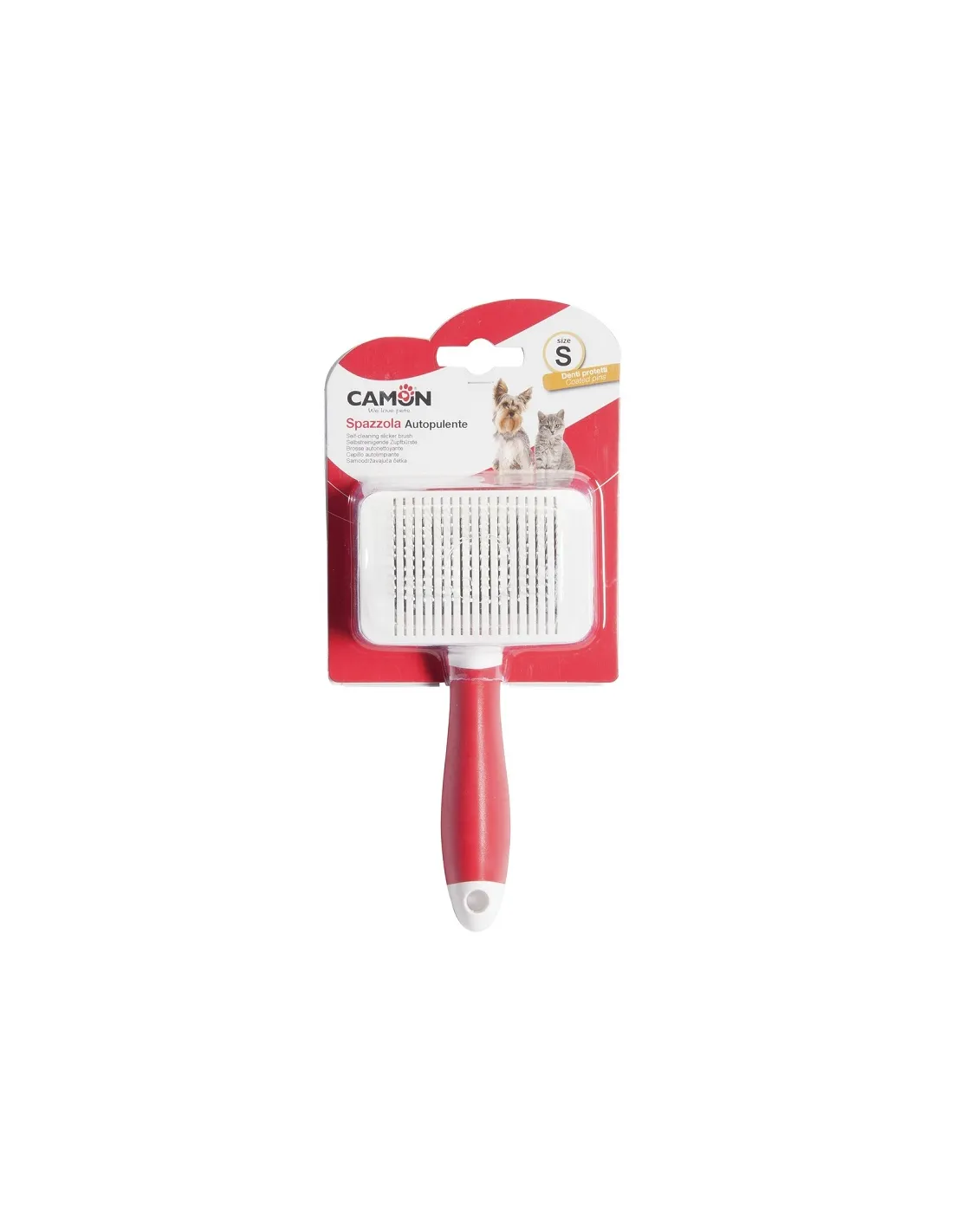 The "Camon" carder stands out for its technical specifications designed to meet the needs of every owner and professional in the sector. The dimensions of 6cm x 4.5cm make it easy to handle, while the steel teeth with rounded plastic tips ensure gentle and safe handling. The variety of sizes available allows you to choose the most suitable carder for the type of hair and size of the dog, always guaranteeing maximum effectiveness. The black color and resistant material complete the profile of a superior quality product.