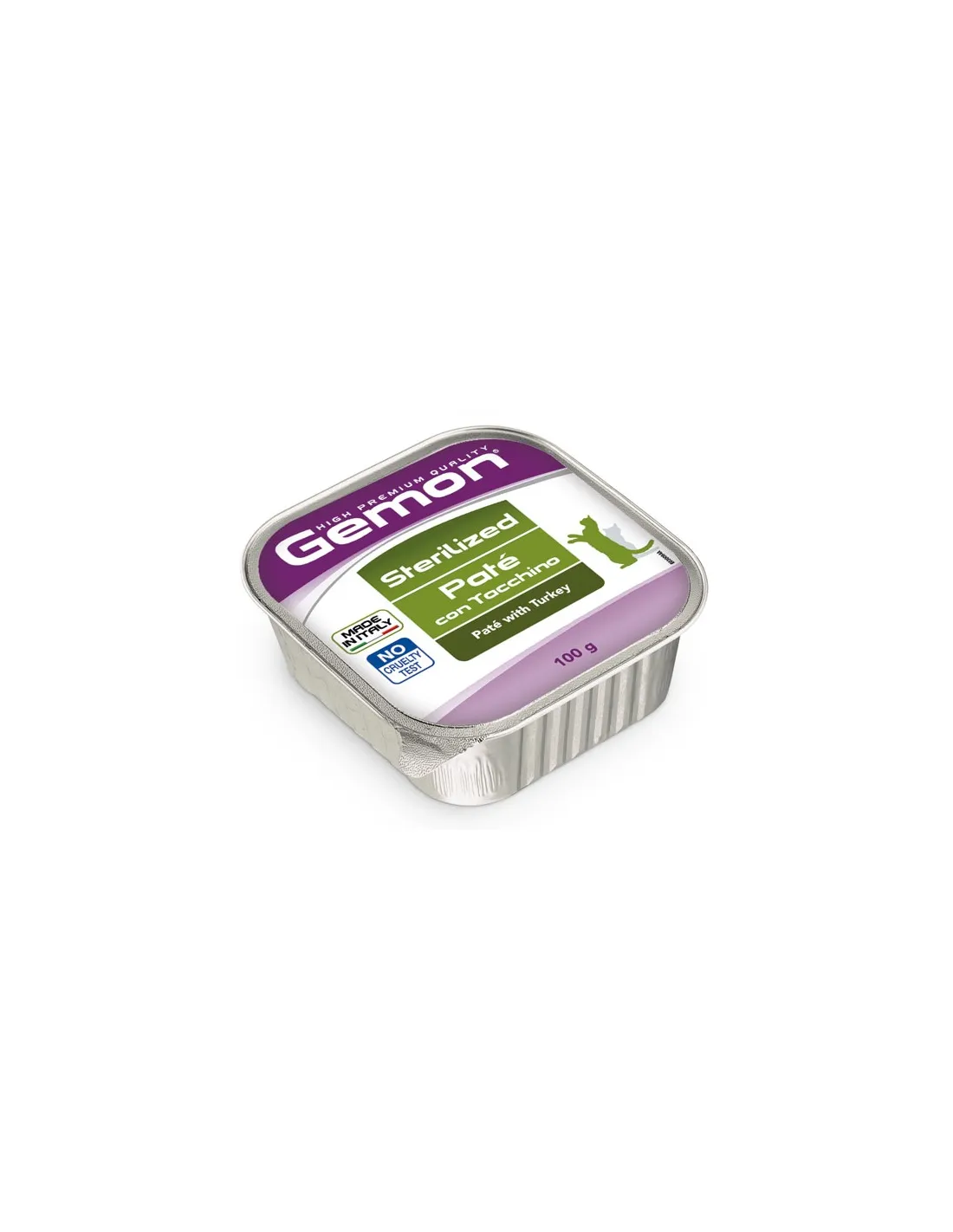 Gemon Sterilized Paté with Turkey is a complete and balanced food, specifically formulated to meet the nutritional needs of sterilized adult cats. This pâté, part of the GEMON HIGH PREMIUM QUALITY line, is made with high quality ingredients, carefully selected to guarantee a balanced diet and promote the daily vitality of your feline. The recipe has been developed to be highly palatable, ensuring that even the most demanding cats are satisfied with the taste and texture of the product. Additionally, our No Cruelty Test policy ensures that no animals were subjected to invasive testing during the development of this food. Produced in Italy, Gemon Sterilized Paté with Turkey is free of artificial colors and preservatives, thus offering a natural and safe meal for your cat.