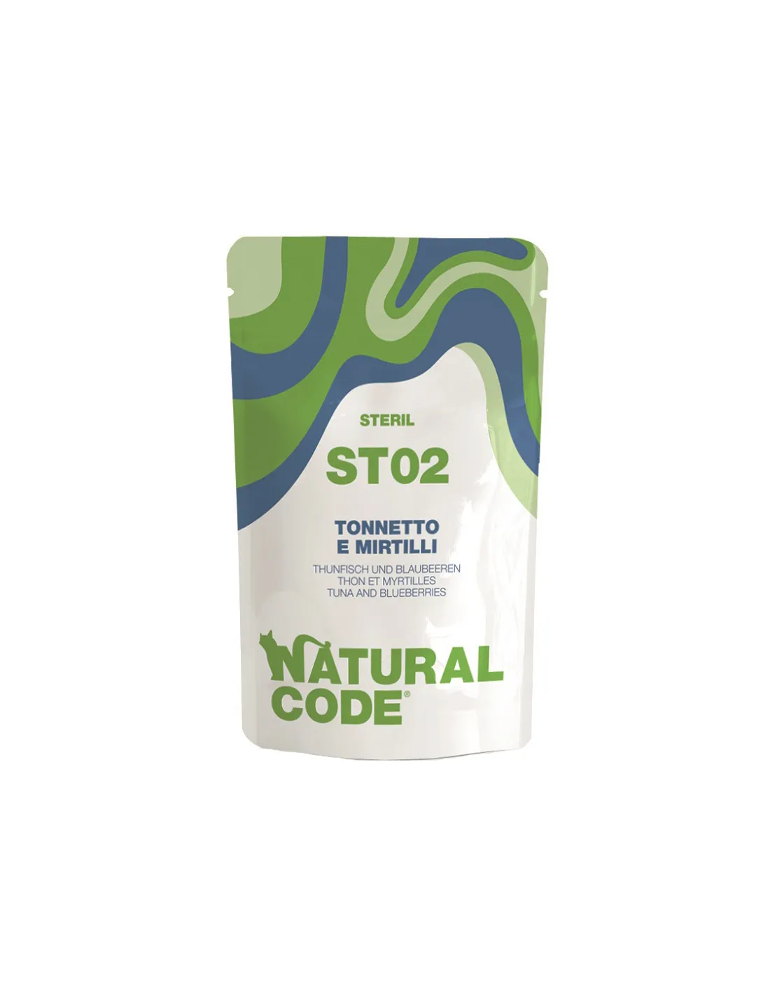 Active ingredients and main ingredients: Natural Steril 02 contains selected tuna as its main ingredient, an excellent source of proteins with high biological value and omega-3 fatty acids which play a fundamental role in cardiovascular health and in the reduction of inflammation. Blueberries, present in optimal quantities, provide antioxidant phytonutrients, including vitamins C and E, important for cellular protection.