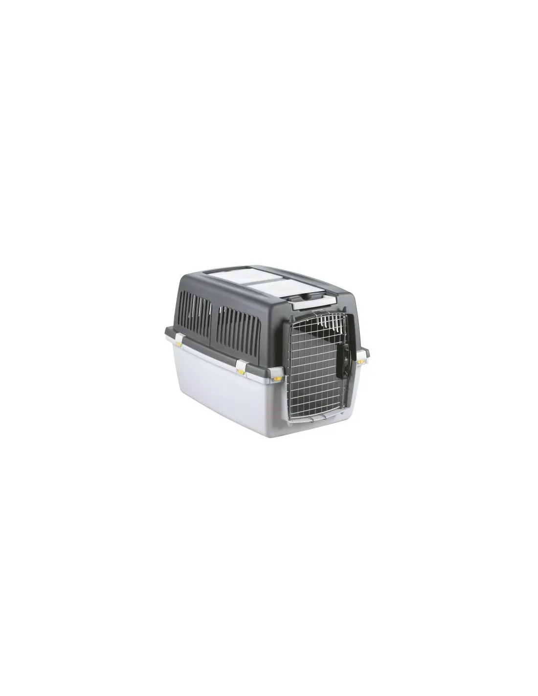 Las superficies internas están tratadas con acabados resistentes a rayones y fáciles de limpiar, ideales para mantener un ambiente higiénico en todo momento. Las aberturas laterales y superior están equipadas con rejillas de metal pintado y sistemas de cierre con clip, que permiten una apertura segura y evitan que el animal se escape accidentalmente.