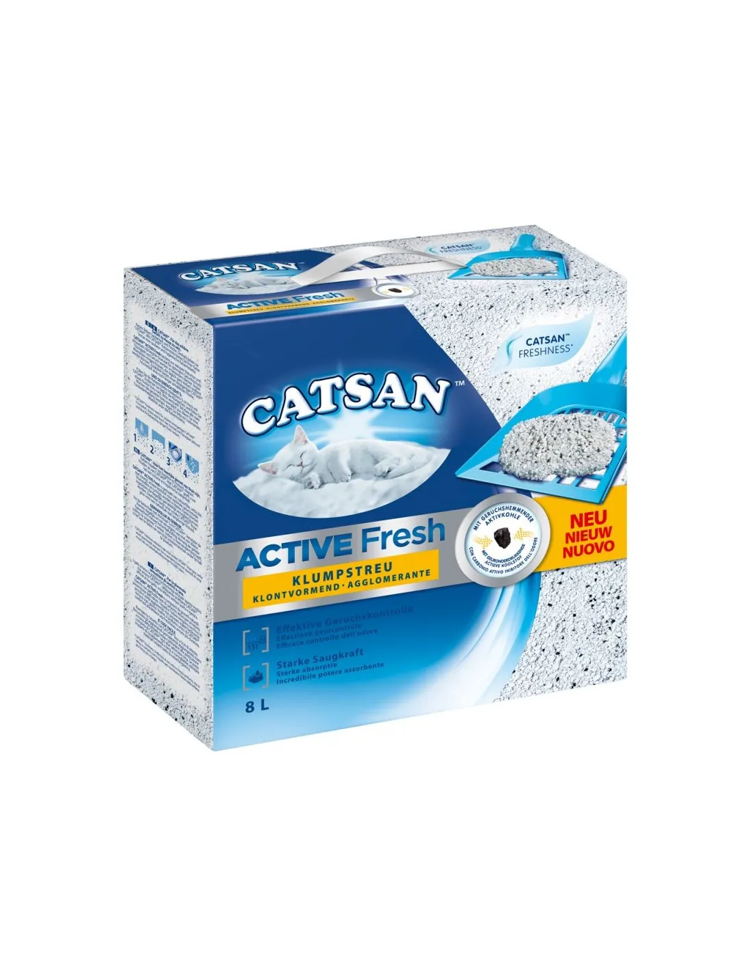 Su fórmula única ofrece una protección mineral duradera contra la aparición de bacterias y malos olores, manteniendo la arena fresca y limpia por más tiempo. Disponible en formato de 8 litros, la arena aglomerante Catsan Active Fresh es la opción ideal para los dueños de gatos que desean un producto eficaz y duradero.