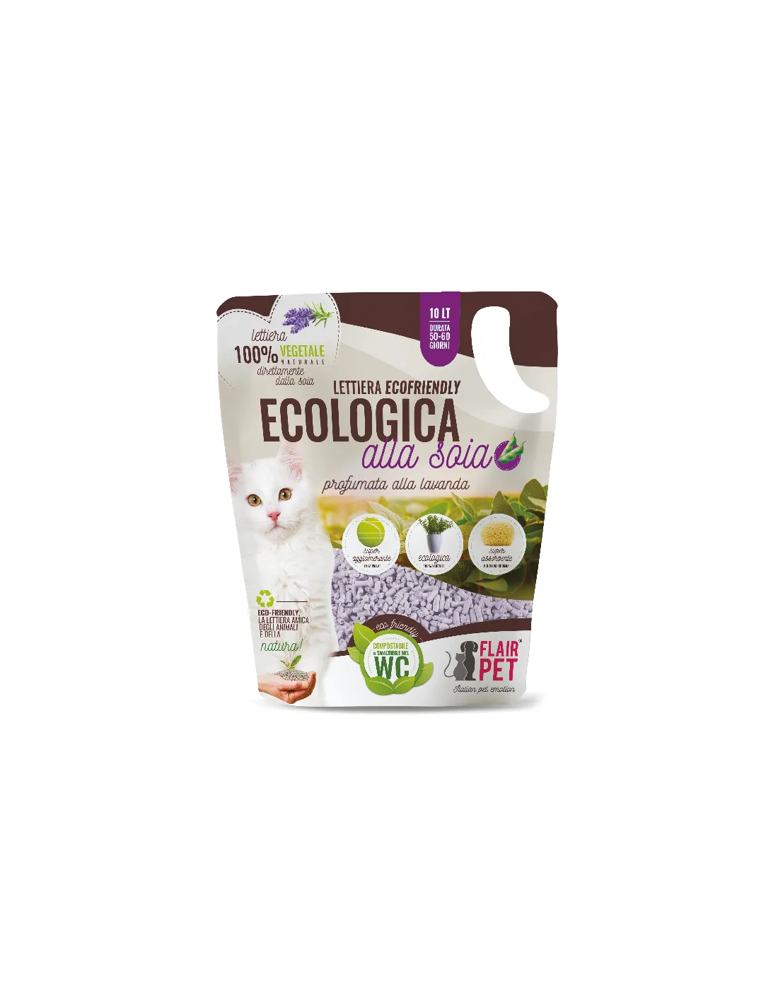 Arena Higiénica Vegetal Soja Perfumada Lavanda 10lt es un producto de alta calidad de la marca Flairpet. Esta arena para gatos está elaborada con soja, un material natural y biodegradable, que garantiza una excelente absorbencia y control de olores. El aroma de lavanda aporta un toque de frescor y tiene un efecto calmante en los felinos, haciendo que el ambiente sea sumamente reconfortante para el gato.
