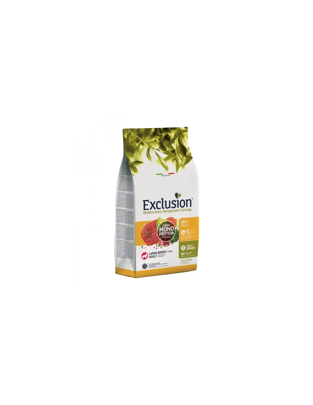 Exclusion Mediterraneo Adult Manzo Large está indicado como dieta diaria completa para perros adultos de razas grandes, especialmente indicada para asegurar un aporte nutricional equilibrado y adecuada para mantener en perfecta forma a animales con propensión natural a niveles de actividad medios o altos. Su composición ayuda a favorecer la digestión, reduciendo el riesgo de intolerancias alimentarias o alergias gracias a una elección cuidadosa y limitada de ingredientes, en particular fuentes de proteínas seleccionadas como la carne de vacuno. Está recomendado para perros que necesitan una dieta rica en proteínas nativas para favorecer la estabilidad muscular y el bienestar articular, factores clave para razas grandes y sometidas a un mayor estrés mecánico.