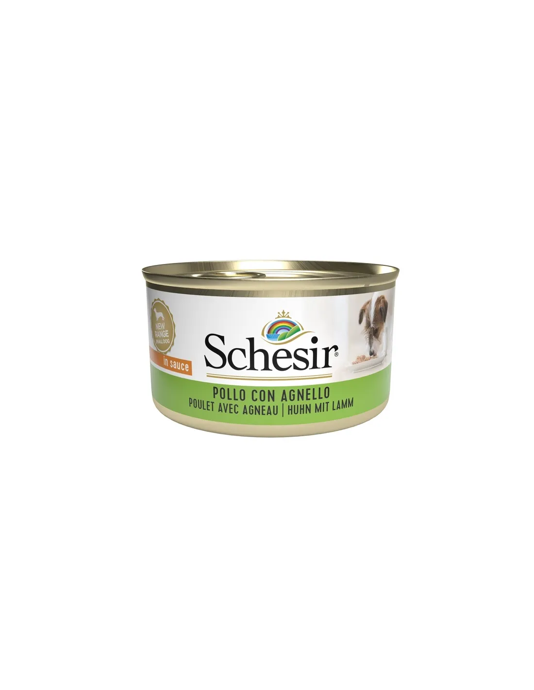 Schesir Dog Pollo con Cordero Lata 85 g es un alimento húmedo de alta calidad para perros adultos que garantiza una deliciosa experiencia culinaria a tu amigo de cuatro patas. Este producto destaca por su fórmula cruelty free y el uso de ingredientes 100% naturales, entre los que se incluyen auténticos filetes de pollo al vapor y un apetitoso aderezo de cordero, todo ello preparado en una sabrosa salsa que realza los sabores genuinos y naturales. La equilibrada composición del alimento incluye un porcentaje significativo de pollo y cordero, enriquecidos con garbanzos y calabaza para aportar fibra y nutrientes esenciales, así como una pequeña adición de arroz y fécula de patata para darle textura y caldo de pescado para darle un toque adicional de sabor.