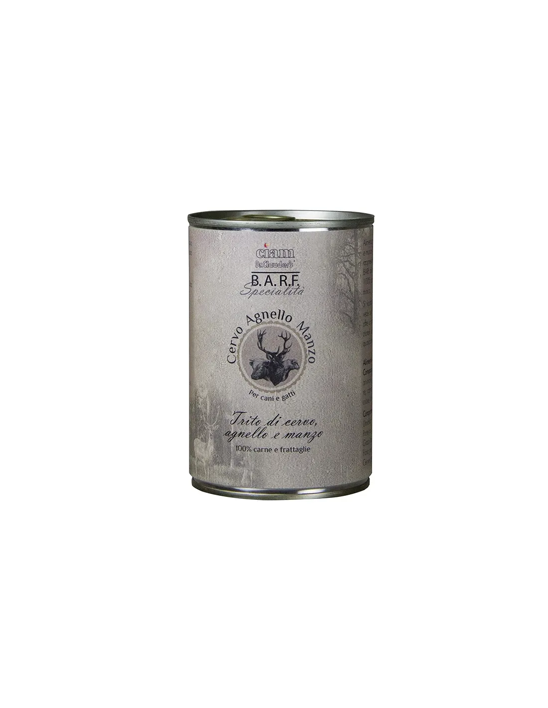 Subproductos animales: ciervo (corazón, carne) (33%), cordero (corazón, carne, hígado, pulmón y callos) (33%), vacuno (corazón, carne, hígado, pulmón y callos) (34%).