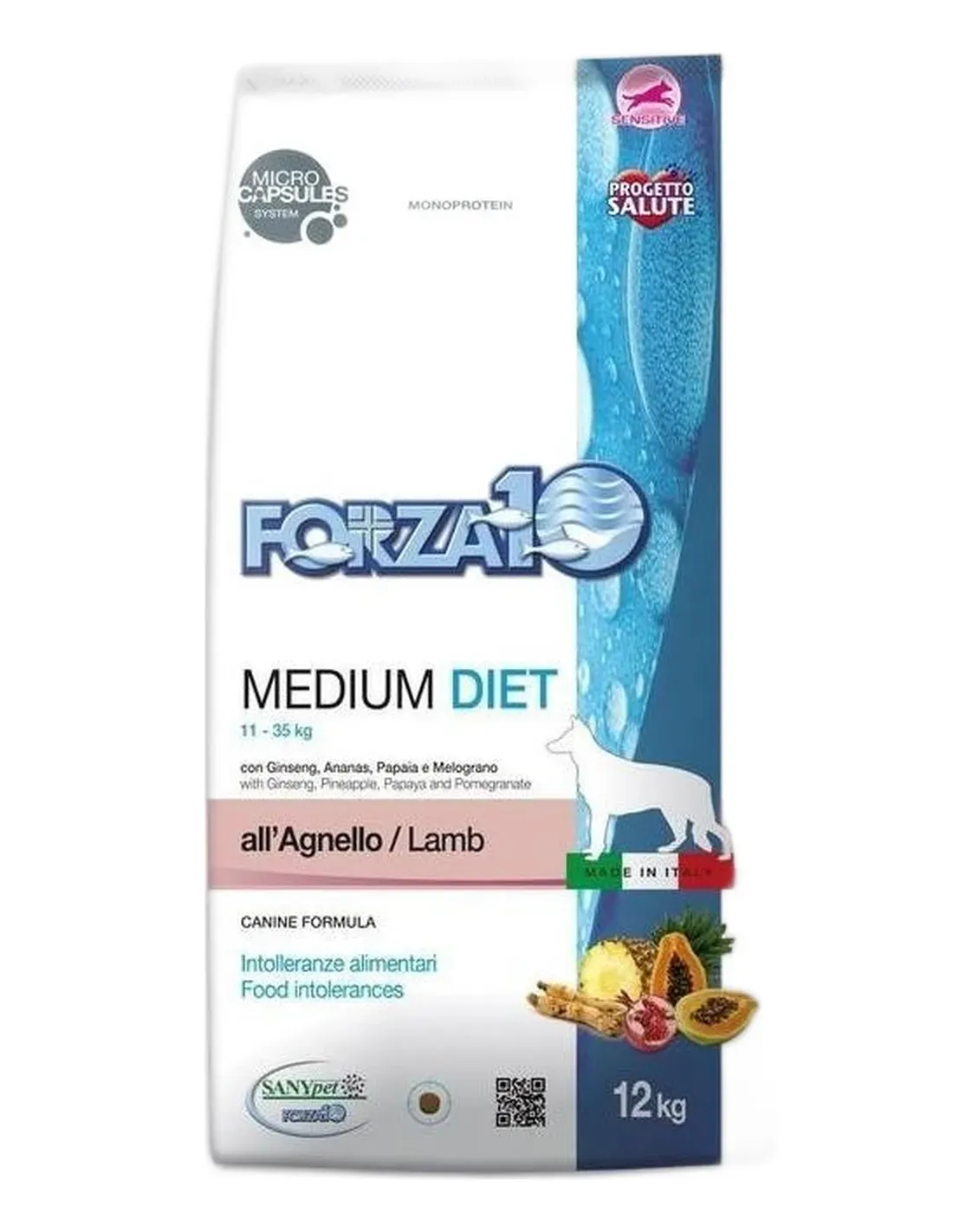 FORZA10 Dieta Mediana con Cordero es la referencia de la Línea Dietética diseñada por SANYpet para satisfacer a todos los perros de tamaño mediano afectados por hipersensibilidad a la carne, especialmente si son fruto de una cría intensiva.