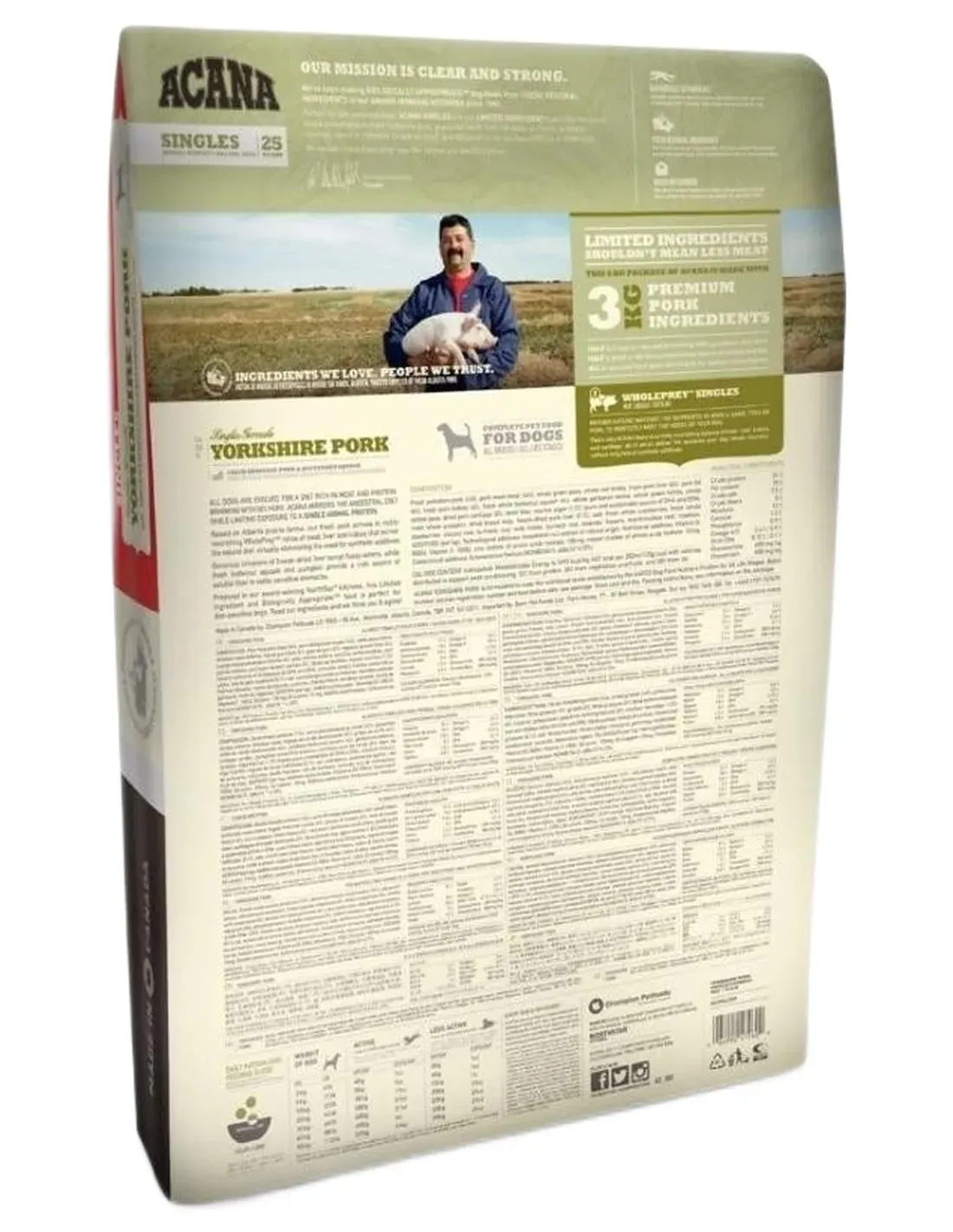 Por esta razón, ACANA Yorkshire Pork contiene un 50% de carne de cerdo Yorkshire criada localmente en granjas de Alberta, toda declarada apta para el consumo humano.