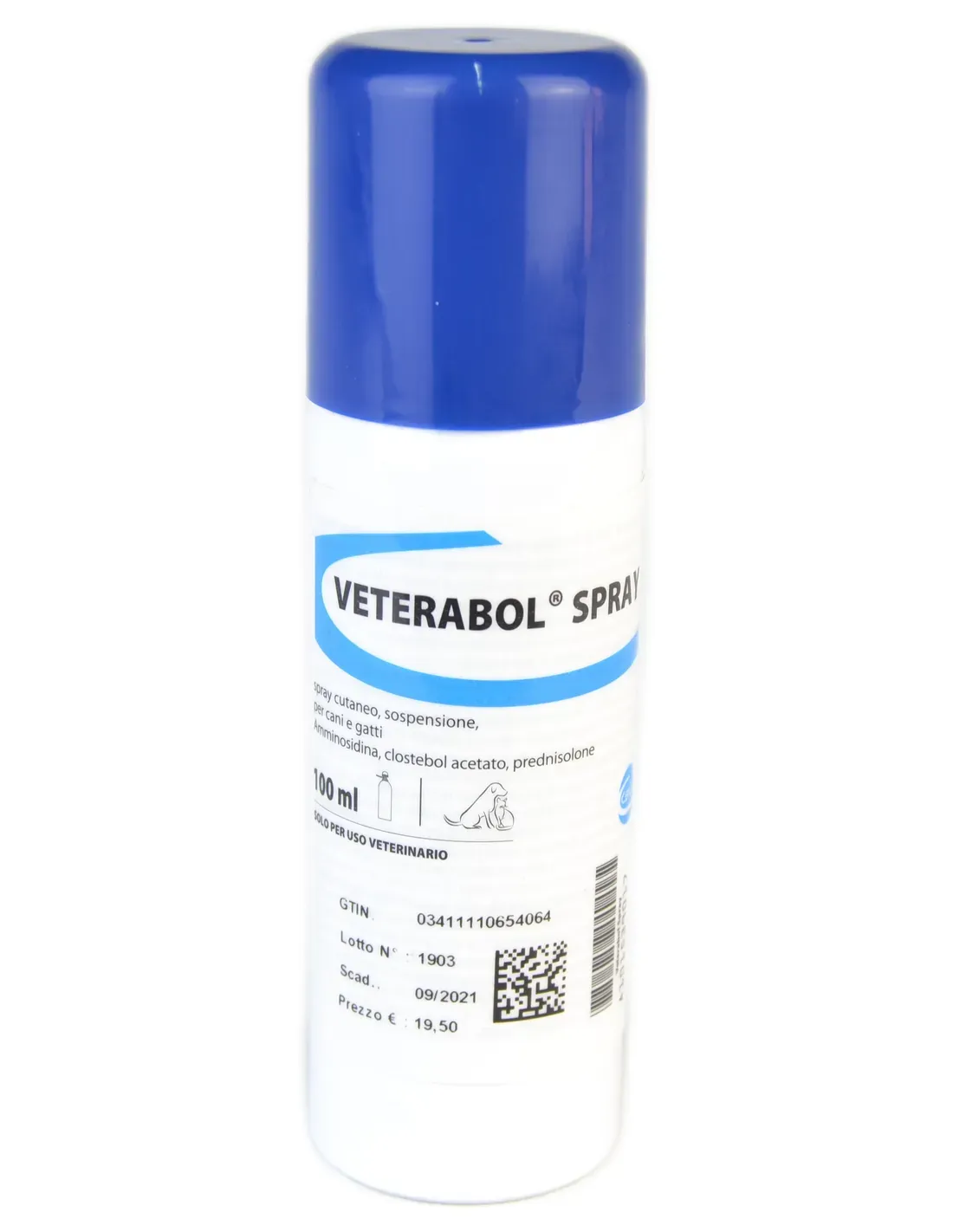 Veterabol spray para perros y gatos, ideal para tratar dermatitis, heridas e inflamaciones de la piel. Fácil de usar, ayuda a calmar el picor y favorece la cicatrización de las lesiones.
