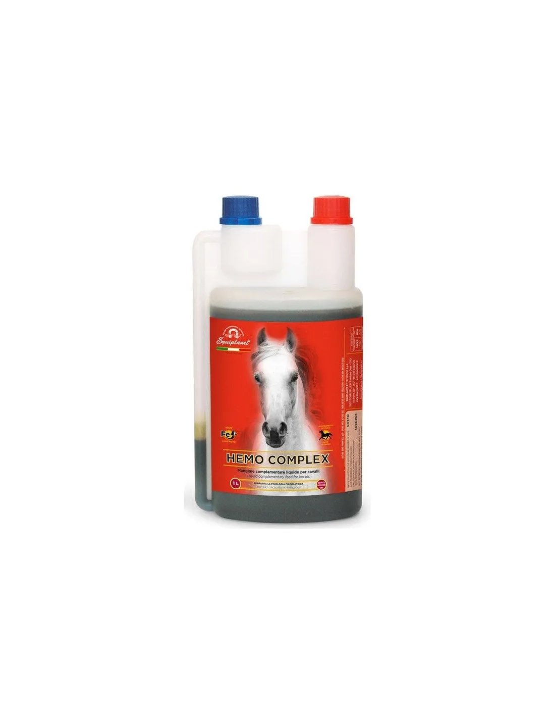 Hemo Complex 1 Litro es una suspensión líquida, específicamente desarrollada para integrar las necesidades de hierro y otros micronutrientes esenciales en la dieta de los animales. Este complemento es ideal para favorecer la formación de hemoglobina y mejorar el transporte de oxígeno en la sangre, optimizando la vitalidad y resistencia del animal en todos los grupos de edad. Está indicado durante los periodos de crecimiento, durante la convalecencia y durante el estrés o trabajo físico intenso, ayudando a mantener altos niveles de energía y prevenir cuadros de anemia.