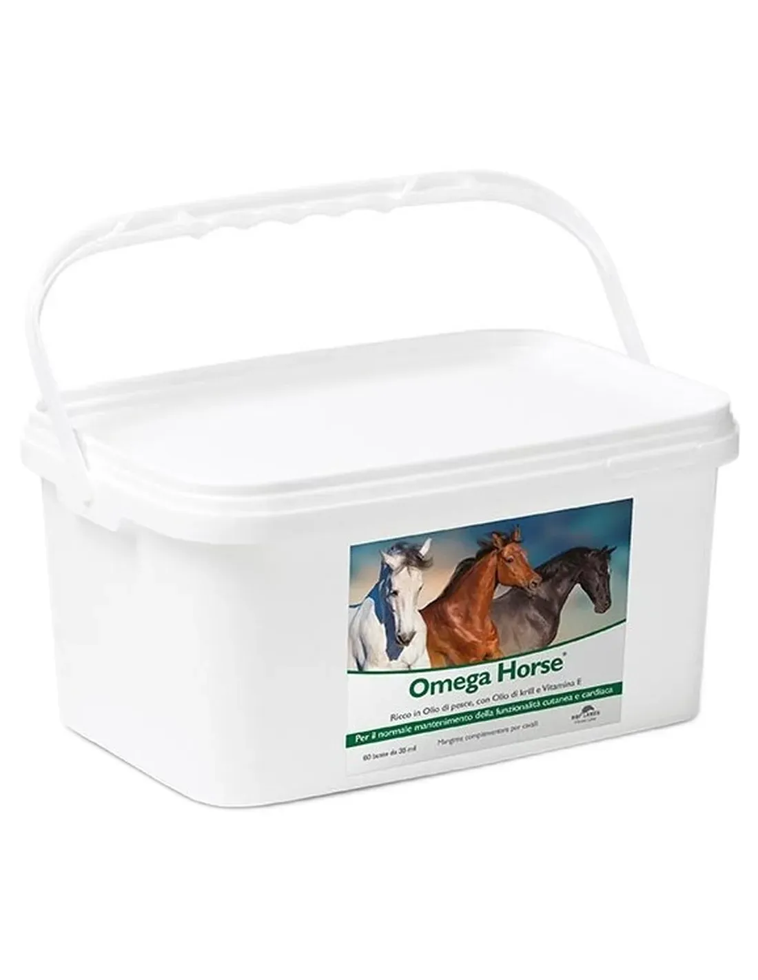 Omega Horse está indicado como complemento para el mantenimiento de la salud de los caballos, mejorando el bienestar general y la vitalidad. Puede utilizarse en diferentes situaciones como periodos de estrés físico, recuperación de una enfermedad o convalecencia, o cuando se necesita apoyo nutricional para mejorar el rendimiento muscular y articular. Las sustancias contenidas contribuyen a fortalecer el sistema inmunológico y favorecer la capacidad del caballo para adaptarse a condiciones ambientales o laborales exigentes. El suplemento es especialmente útil para caballos deportivos, de trabajo o de cría para favorecer un desarrollo armonioso y prevenir la fatiga. Además, Omega Caballo puede administrarse para potenciar la salud de la piel y del pelaje, combatiendo la sequedad y mejorando el brillo, aspectos de gran importancia para la presentación estética del animal. Este complemento representa un apoyo válido en todas las fases de la vida del caballo, especialmente cuando existe una mayor demanda energética o la necesidad de mantener un alto nivel de rendimiento físico.