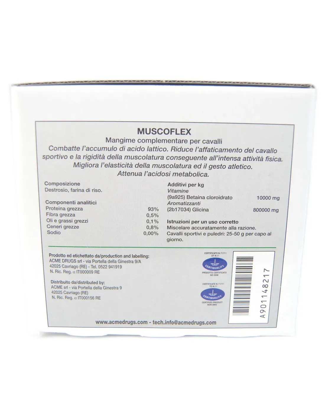 Producto con alta concentración de glicina (800.000 mg) y betaína (10.000 mg). La glicina conjuga el ácido láctico y neutraliza su poder histogénico mediante un efecto tampón, disminuyendo los valores de lactacidemia. Produce vasodilatación a nivel arteriolar, aumentando el drenaje muscular. La betaína interviene en los procesos catabólicos del nitrógeno orgánico, favoreciendo la eliminación de la hiperamonemia derivada de lesiones musculares por acumulación de ácido láctico. Fatiga muscular, acidosis metabólica por acumulación de ácido láctico, rigidez de los músculos esqueléticos y en todos los casos de estrés muscular por actividad deportiva intensa.