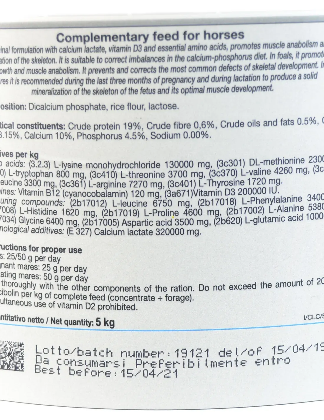 Además, el complemento puede utilizarse como apoyo en dietas específicas, integrando minerales esenciales cuando la dieta básica no satisface completamente las necesidades nutricionales o en caso de estrés fisiológico que pueda comprometer la absorción o utilización del calcio.
