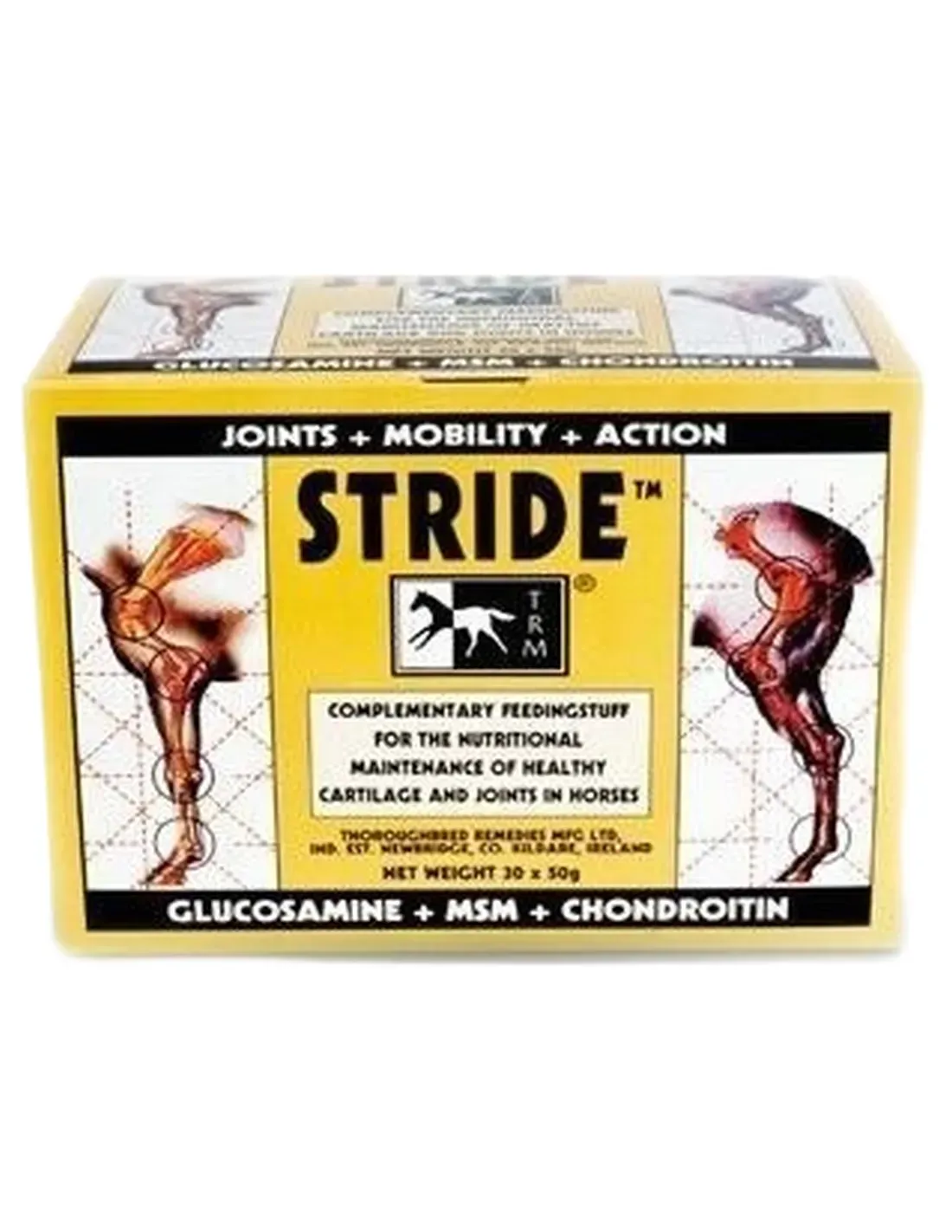 STRIDE es un pienso complementario y es capaz de combinar los beneficios nutricionales del Cloruro de Glucosamina con el Sulfato de Condroitina y el Metilsulfonilmetano (MSM).