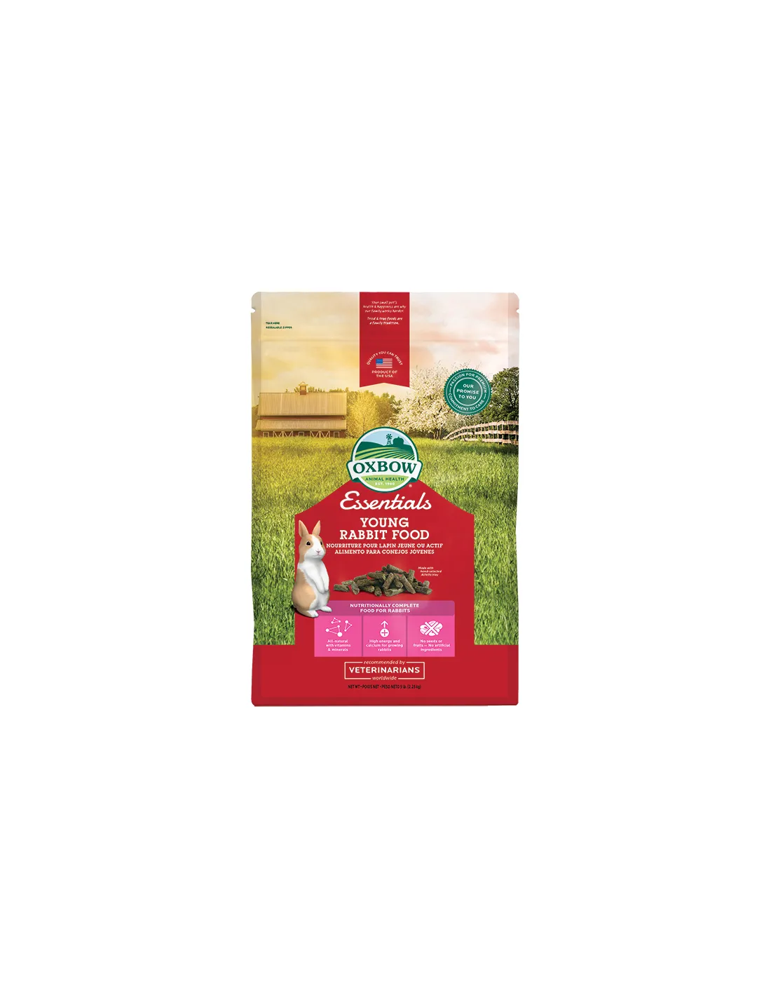 Oxbow Essentials Young Rabbit Food es un alimento granulado específicamente formulado para satisfacer las necesidades nutricionales de conejos jóvenes y en crecimiento. Este producto está disponible en envases de 2,27 kg, ideal para asegurar una dieta equilibrada y completa en las primeras etapas de vida del conejo.