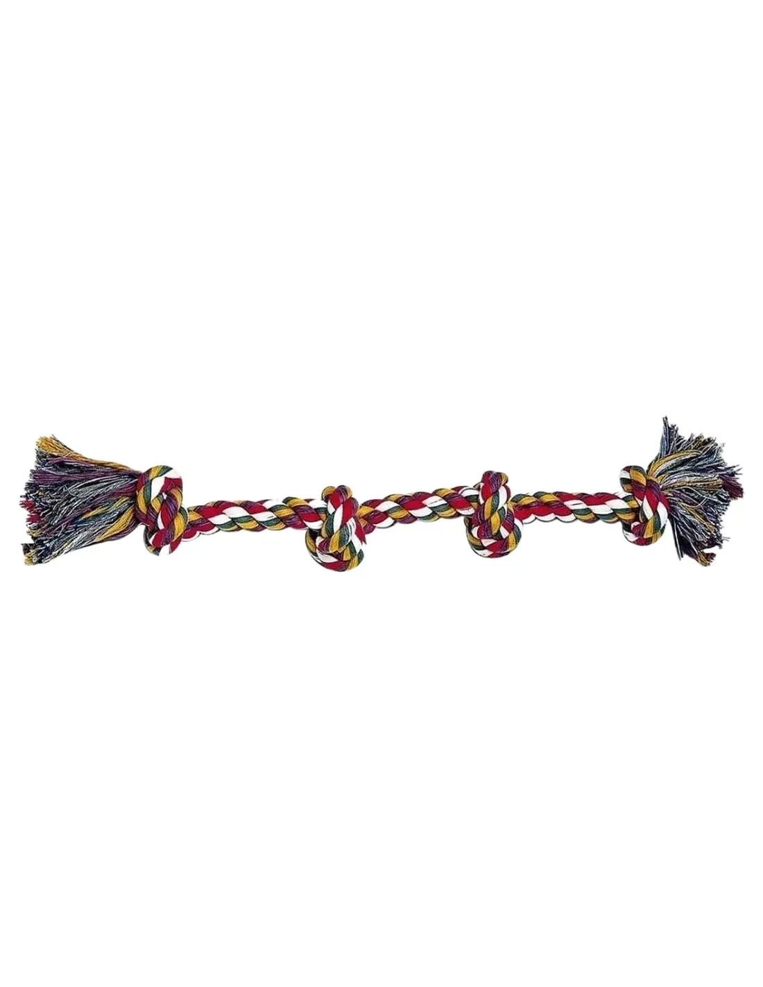 El diseño con cuatro nudos distribuidos a lo largo del juguete permite un fácil agarre por parte del perro, facilitando la masticación y masajeando eficazmente las encías.