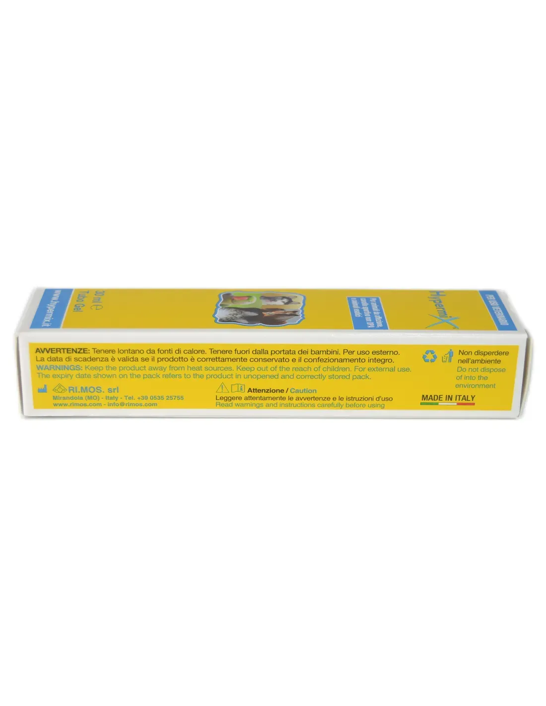 Limpiar la piel con agua y eventualmente jabón neutro (jabón de Marsella) o solución salina y proceder con la aplicación de hypermix®. No se recomienda el uso de desinfectantes. En la medida de lo posible, los cuerpos extraños deben eliminarse mecánicamente. El producto se puede aplicar más fácilmente en forma de gel, directamente sobre la piel y mantenido con una gasa no tejida también rociada con la formulación en gel y luego, si es posible y necesario, bloqueada con otra gasa no tejida fijada con un apósito respirable, y luego fijar todo con una venda elástica cohesiva crepada o con una venda de malla elástica. Importante: en una nueva aplicación, si quedan restos de gel en la piel se puede retirar, siempre y cuando sea delicado. Si es necesario lavar con solución salina antes de volver a aplicar el gel.