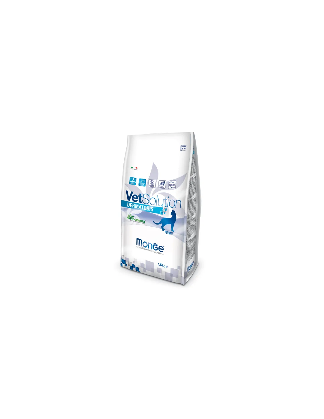 Es un alimento dietético completo para gatos formulado para apoyar la función dérmica en caso de dermatosis y caída excesiva del pelo. Contiene concentrado de jugo de melón para neutralizar los radicales libres, aloe vera para apoyar la piel, xilooligosacáridos (xos) para preservar la microbiota intestinal y la formulación se caracteriza por una alta concentración de ácidos grasos esenciales.