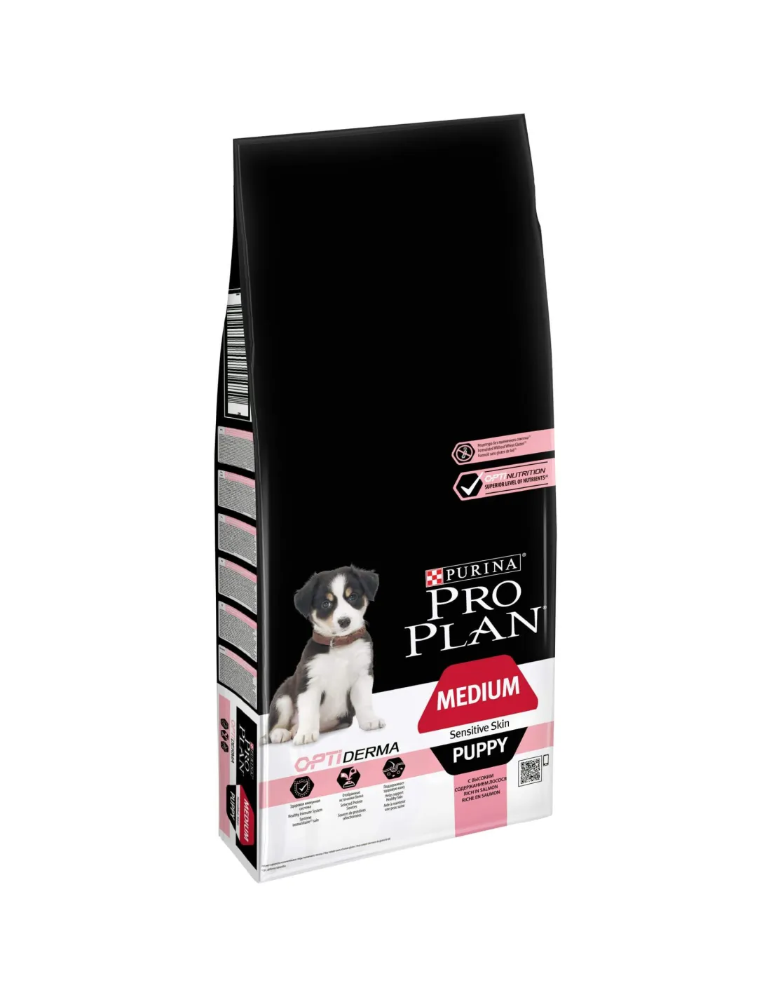 Purina® PRO PLAN® Medium Puppy Sensitive Skin con OptiDerma es un alimento completo para perros creado específicamente para las necesidades de cachorros con piel sensible, así como las de perras gestantes o lactantes.