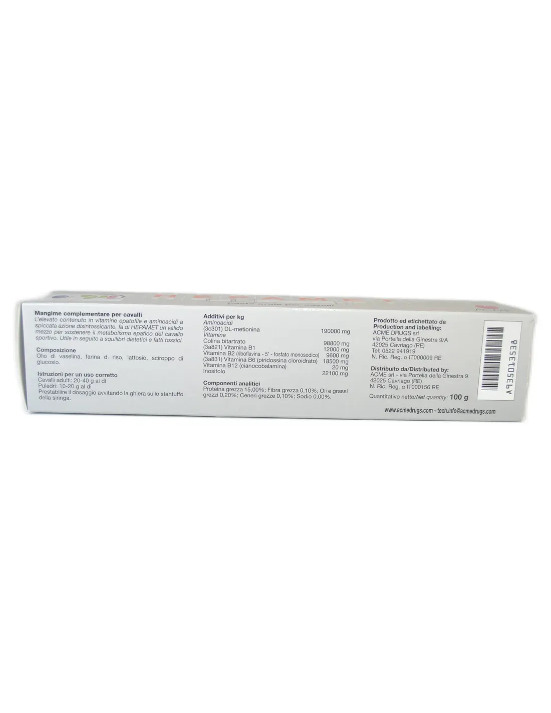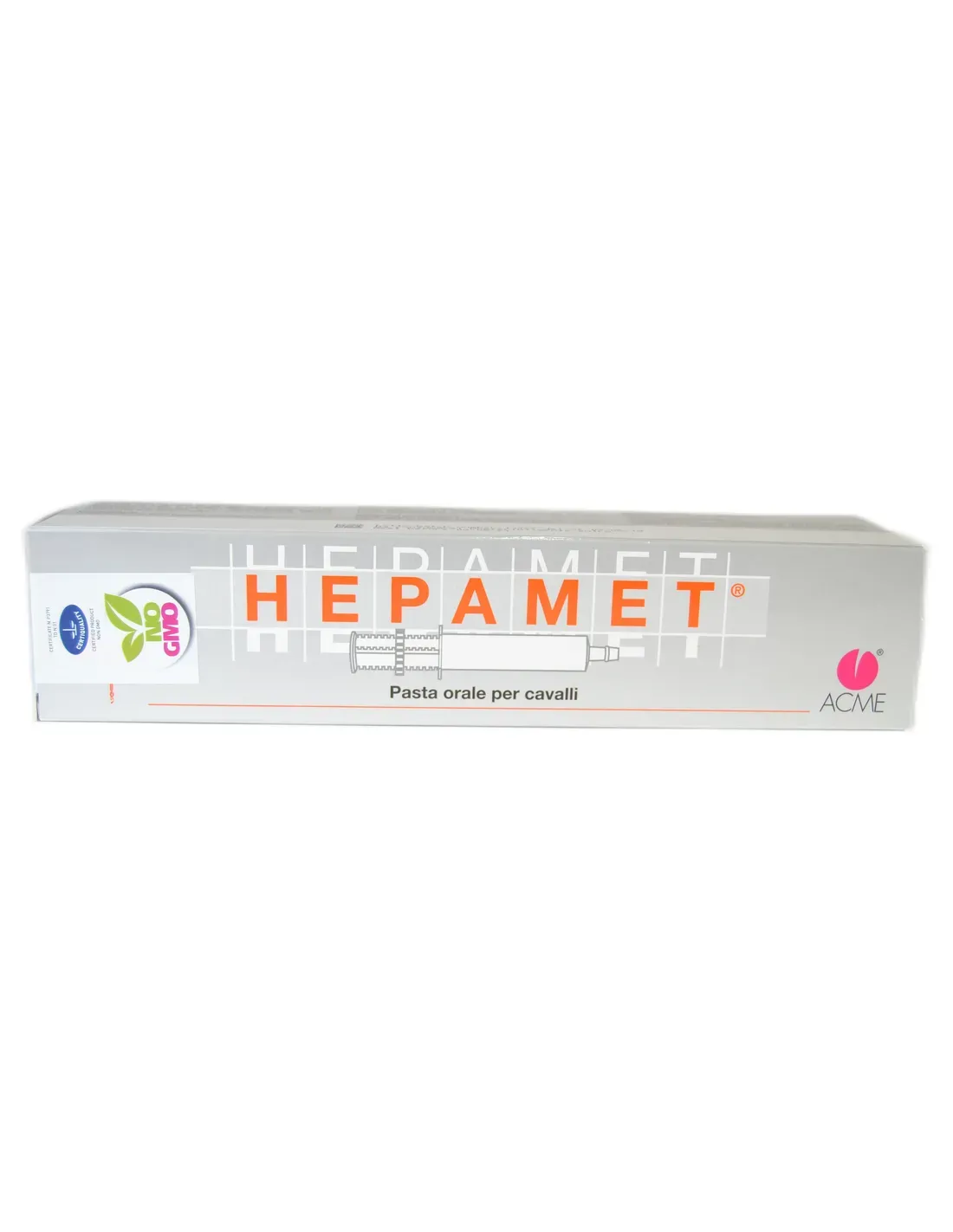 Hepamet pasta es un complemento alimenticio en pasta, contenido en una jeringa de 100 g, específicamente diseñado para apoyar la función hepática y favorecer el bienestar general del animal.