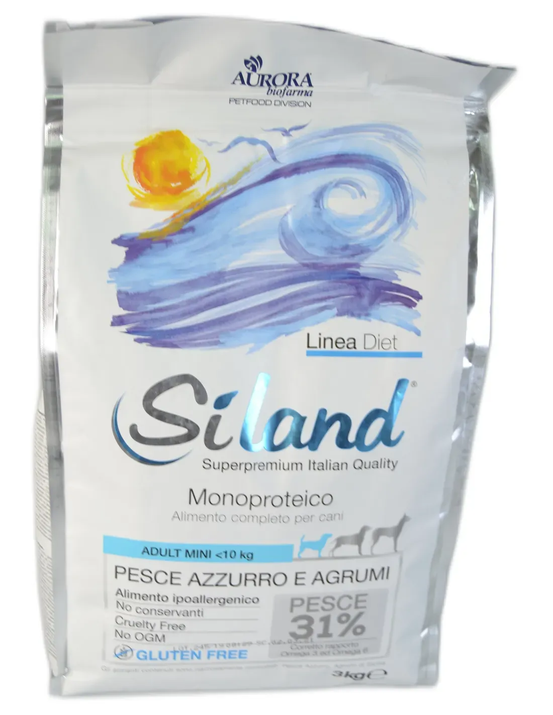Siland Diet Adult mini es un pienso monoproteico completo a base de pescado azul y cítricos.