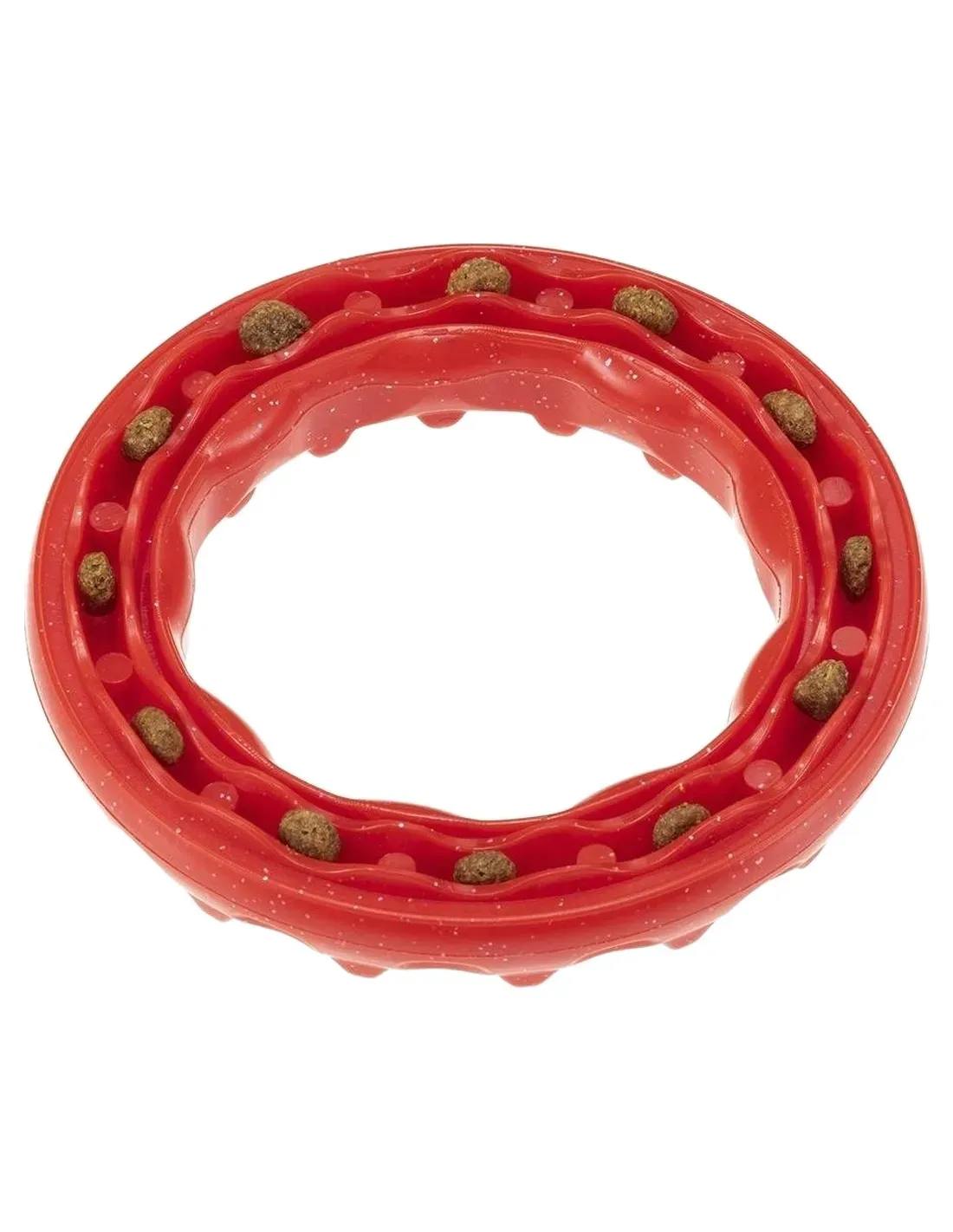 El juguete dental Ferplast Smile pequeño aro rojo está fabricado en goma termoplástica resistente, diseñado para ayudar a limpiar los dientes del perro durante el juego. La forma de anillo estimula la masticación y ayuda a eliminar la placa y el sarro.