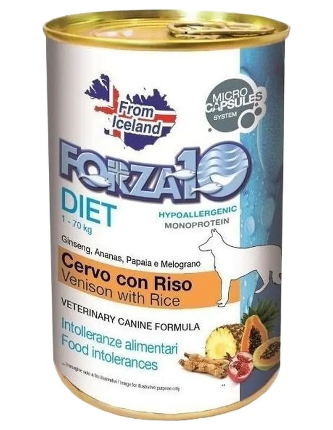 FORZA10 Diet Ciervo con Arroz es una dieta monoproteica con carnes alternativas de la Línea Dietética diseñada por SANYpet integrada con innovadoras microcápsulas, indicadas para la reducción de intolerancias alimentarias.