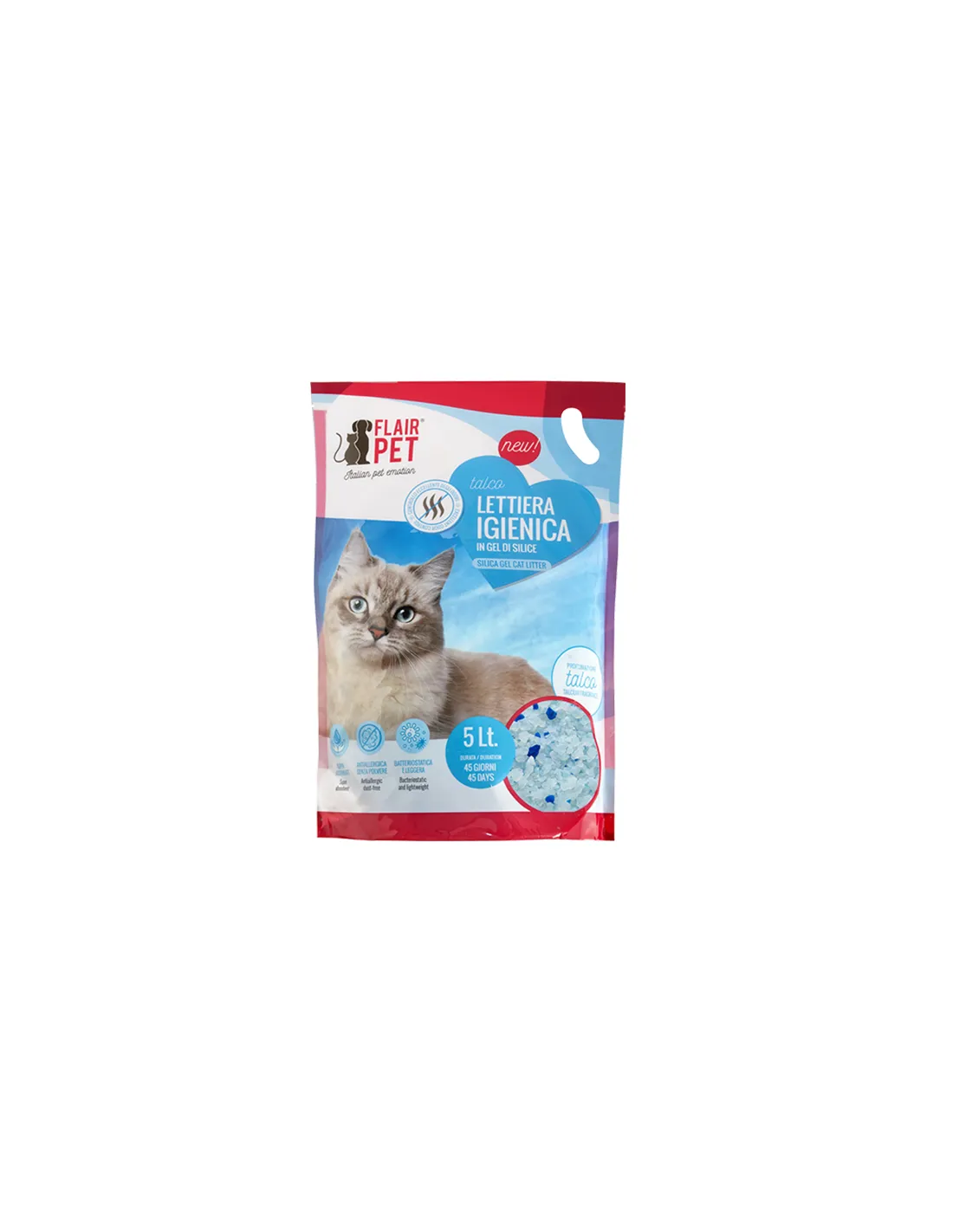 Flairpet presenta su serie de arena higiénica para mascotas, elaborada con gel de sílice. Esta arena está disponible en varios aromas, incluidos cítricos, lavanda y talco, para ofrecer una variedad de opciones que se adaptan a las preferencias de su mascota. La arena está disponible en dos tamaños diferentes: 5 litros y 15 litros, para satisfacer las necesidades de cada dueño de mascota. El producto en cuestión es "Flair pet silicio arena 5 Lt Talco", una arena para arena para gatos.