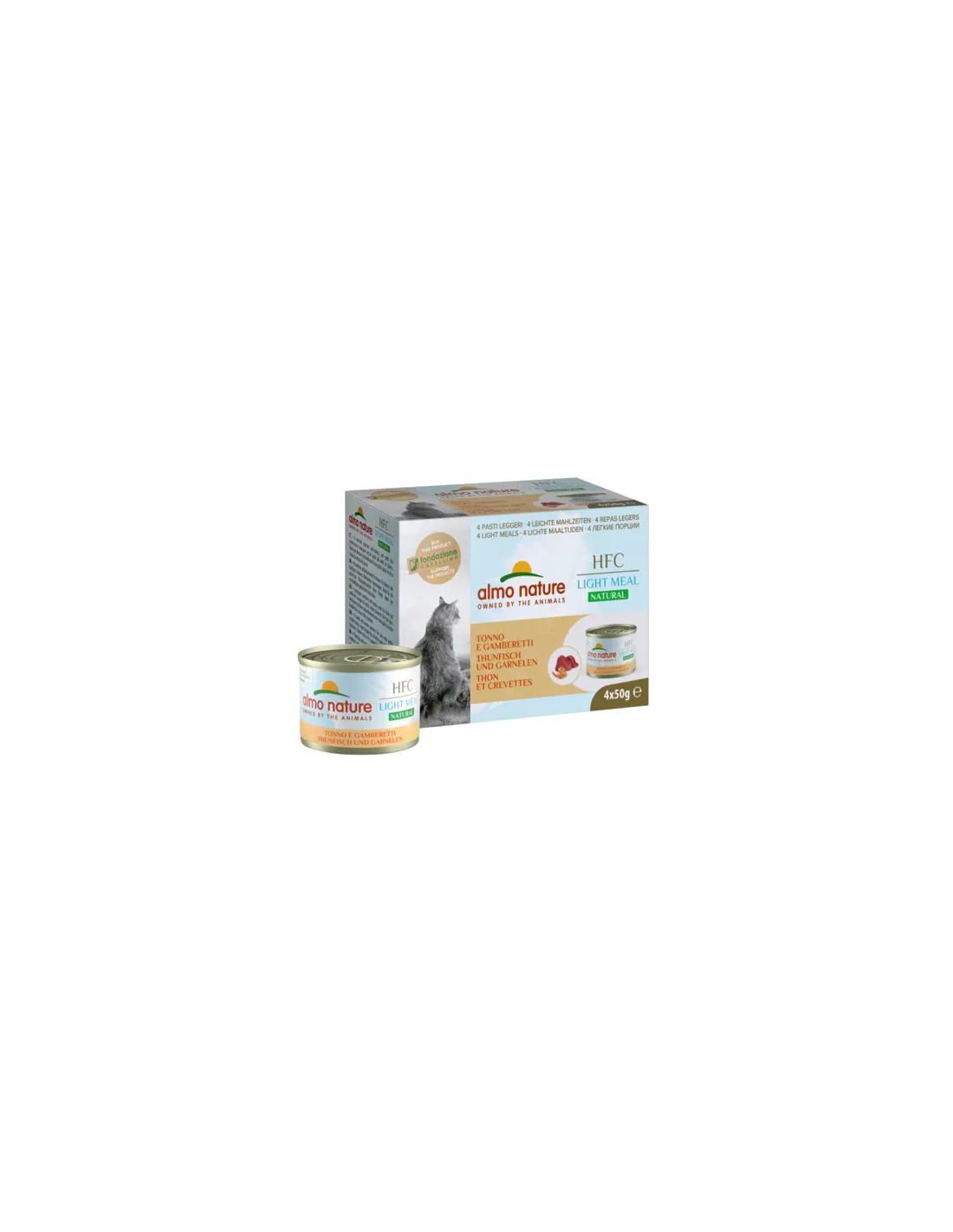 Almo Cat Light Meal es un alimento húmedo específicamente formulado para gatos que necesitan una dieta controlada en calorías para mantener un peso ideal. Este pack contiene 4 raciones de 50 gramos cada una, ofreciendo una comida práctica y equilibrada perfecta para gatos adultos. La receta combina el delicado sabor del atún con el apetitoso toque de los camarones, creando una mezcla sabrosa y nutritiva en cada porción.