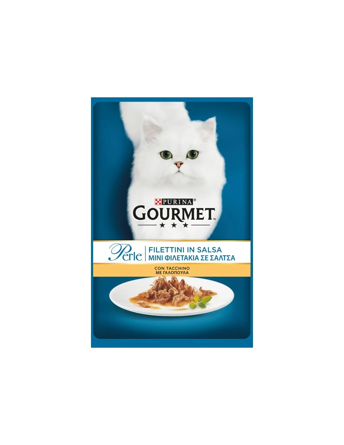 Comida para gatos sabor pavo en bolsitas, paquete de 85 g. Formulado con ingredientes seleccionados para garantizar una nutrición equilibrada y sabrosa.