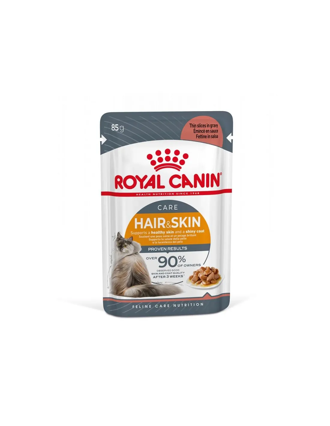 Royal Canin Intense Beauty in Gravy es una comida húmeda para gatos que combina lonchas de carne en una deliciosa salsa, diseñada específicamente para mantener y realzar la belleza del pelaje de tu gato. Cada pack contiene 12 sobres de 85 gramos cada uno, ideales para alimentar a tu gato con una dieta equilibrada y sabrosa.