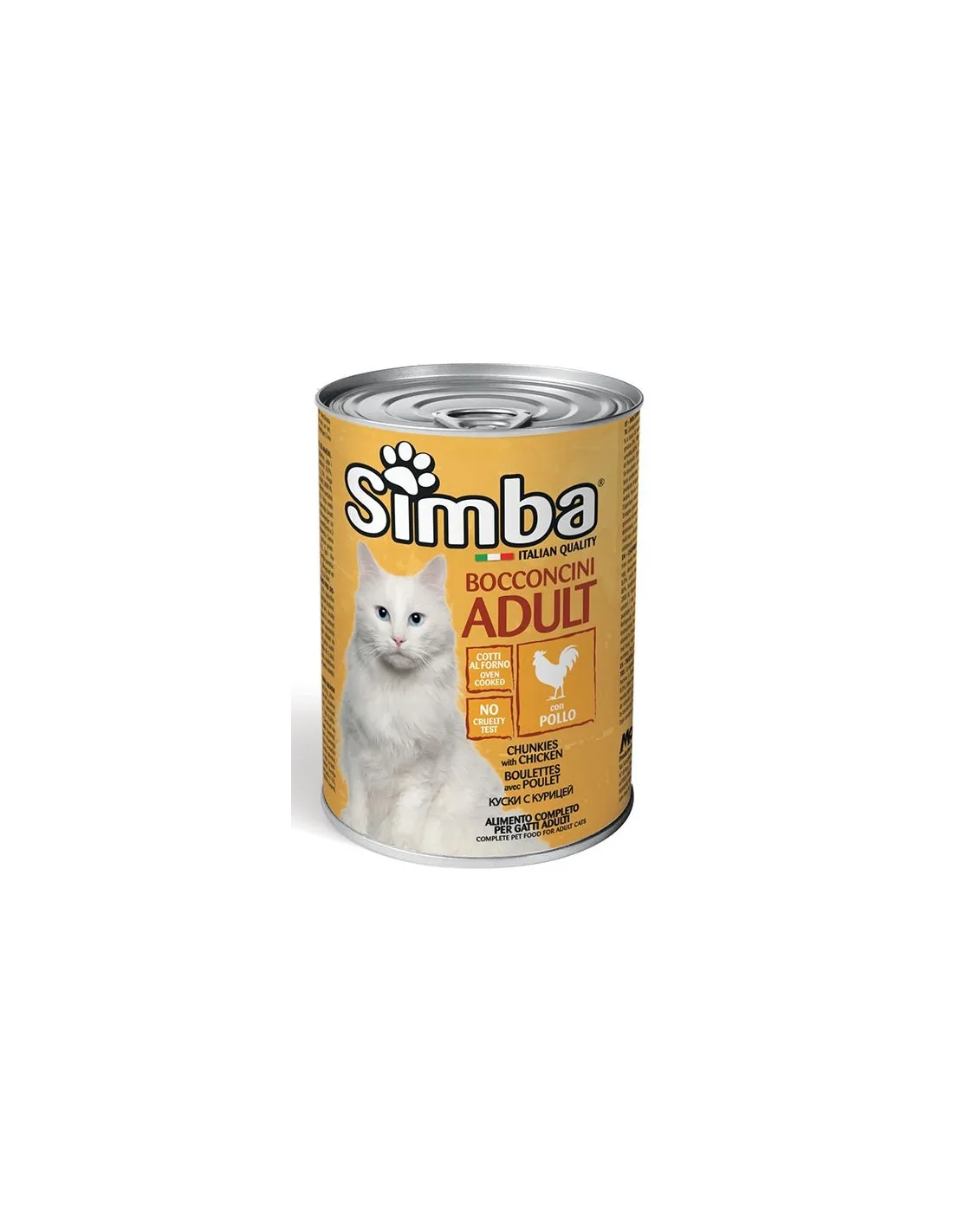 Simba Gatto Bocconi Pollo 415 Gr es un alimento completo para gatos adultos que aporta todos los nutrientes necesarios para mantener a tu gato sano y lleno de energía. La receta fue desarrollada para satisfacer específicamente las necesidades nutricionales de los gatos adultos, con un equilibrio perfecto de proteínas de alta calidad, grasas esenciales, carbohidratos de fácil digestión, vitaminas y minerales. Los bocados se sumergen en una sabrosa salsa que estimula el apetito del gato y hace que la comida sea aún más agradable.