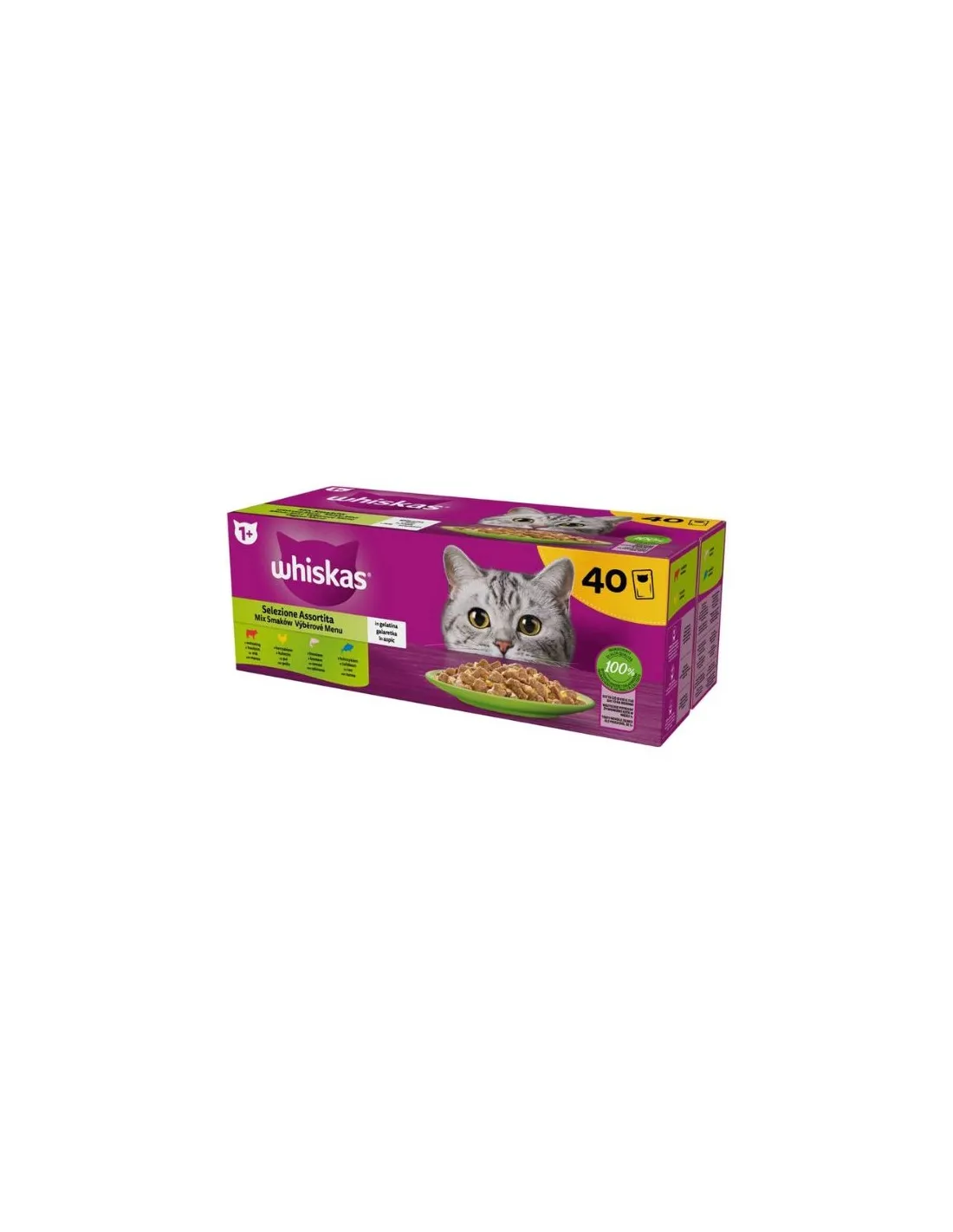Whiskas® Selección Surtida Sobres 40x85g ofrece una dieta completa y equilibrada para gatos adultos, con una variedad de sabores que satisfacen hasta los paladares más exigentes. Cada bolsa contiene golosinas de gelatina enriquecidas con vitamina C para reforzar las defensas naturales de tu gato.