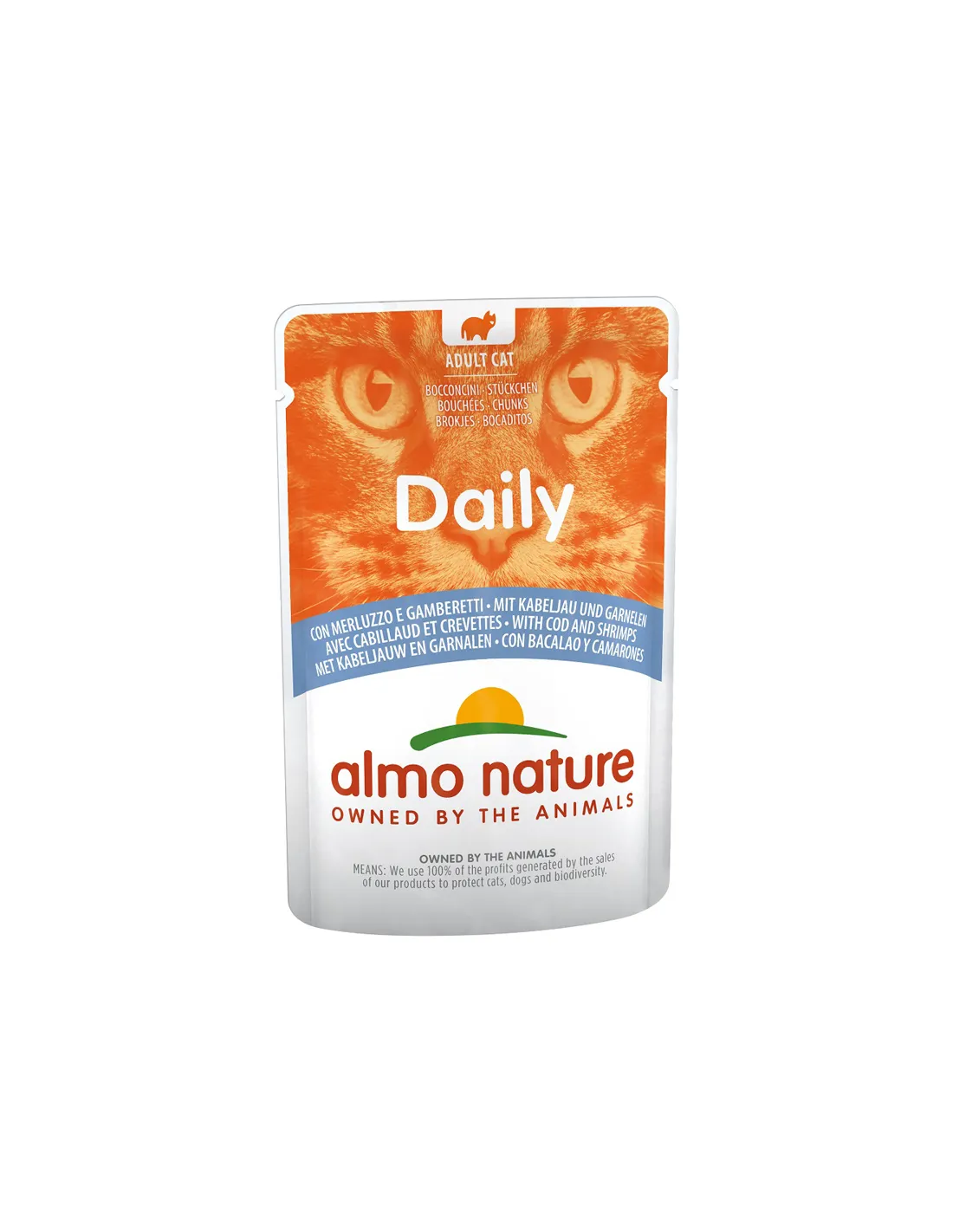 Almo Cat Menú Diario 70 Gr Bacalao y Gambas está diseñado para su uso diario como parte integral de la dieta del gato. No se trata de un producto terapéutico sino de un alimento completo y equilibrado, adecuado para mantener una correcta nutrición diaria.