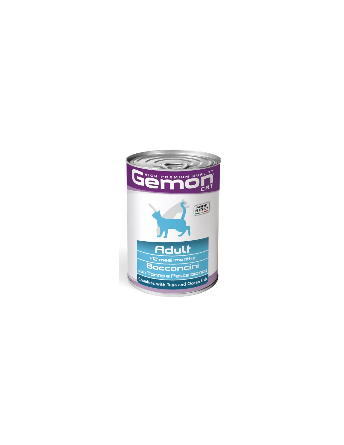 Los bocados de atún y pescado blanco para gatos Monge Gemon son un alimento completo y equilibrado, diseñado para cubrir las necesidades nutricionales de los gatos adultos. Este producto destaca por su alta palatabilidad, gracias al uso de carnes italianas frescas de alta calidad. La receta ha sido cuidadosamente diseñada para ofrecer una comida sabrosa y nutritiva, sin el uso de pruebas crueles en animales. Cada lata de 415 gramos está repleta de sabores naturales que deleitarán el paladar de tu felino, a la vez que le aportan todos los nutrientes necesarios para su bienestar diario.