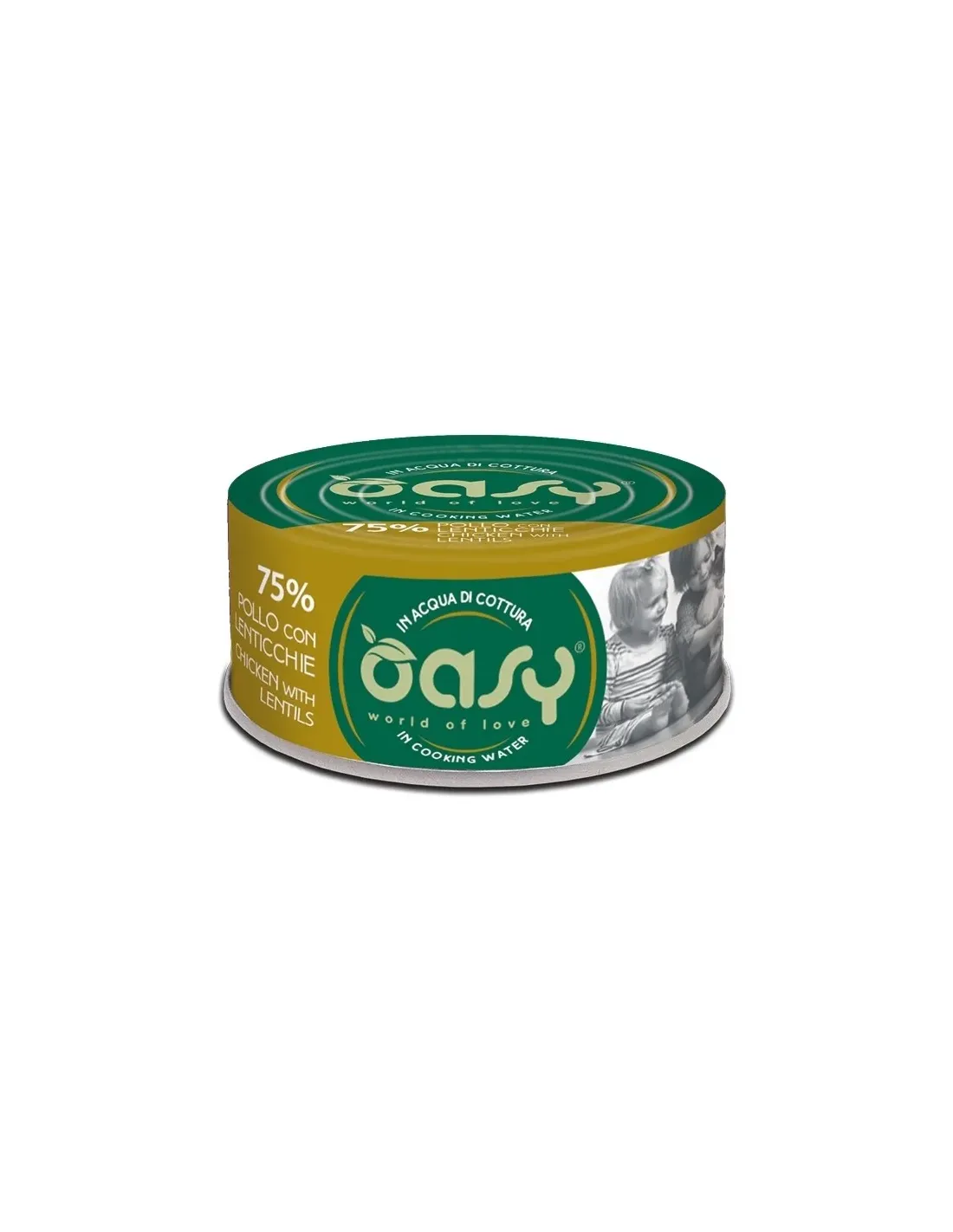 More Love Pollo con Lentejas de Oasy es un alimento complementario húmedo para gatos adultos que ofrece una combinación de ingredientes naturales y nutritivos. Elaborado con un alto porcentaje de pollo, un 70%, y enriquecido con un 5% de lentejas, este producto destaca por su formulación limpia y sencilla. Es una opción ideal para los dueños de gatos que buscan un alimento sin colorantes, saborizantes ni conservantes artificiales. Su composición está libre de gluten, OGM y soja, por lo que es apto incluso para gatos con sensibilidad alimentaria. Cada lata de 70 gramos es una ración perfecta para un capricho diario, garantizando una comida sabrosa y saciante.