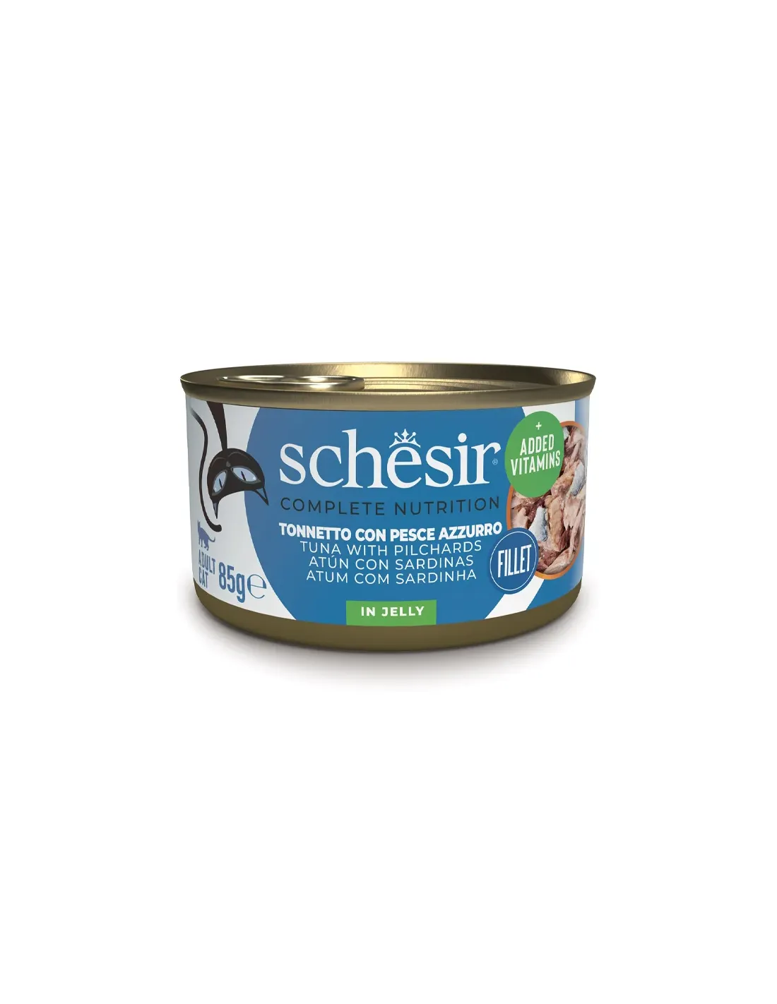 Schesir Cat Atún y Pescado Azul sobre 85 g es un alimento húmedo de alta calidad para gatos adultos. Este producto destaca por ser cruelty free y por utilizar ingredientes genuinos y naturales. Los auténticos filetes de atún, cocidos al vapor y enriquecidos con pescado azul, son una excelente fuente de Omega 3 y se sirven en una deliciosa gelatina que realza su sabor y textura. La composición 100% natural garantiza una alimentación sana y equilibrada, libre de conservantes y colorantes artificiales, respetando la salud y el bienestar de tu felino. El sobre de 85 gramos es práctico y fácil de servir, asegurando una comida fresca y apetitosa en cada ocasión.
