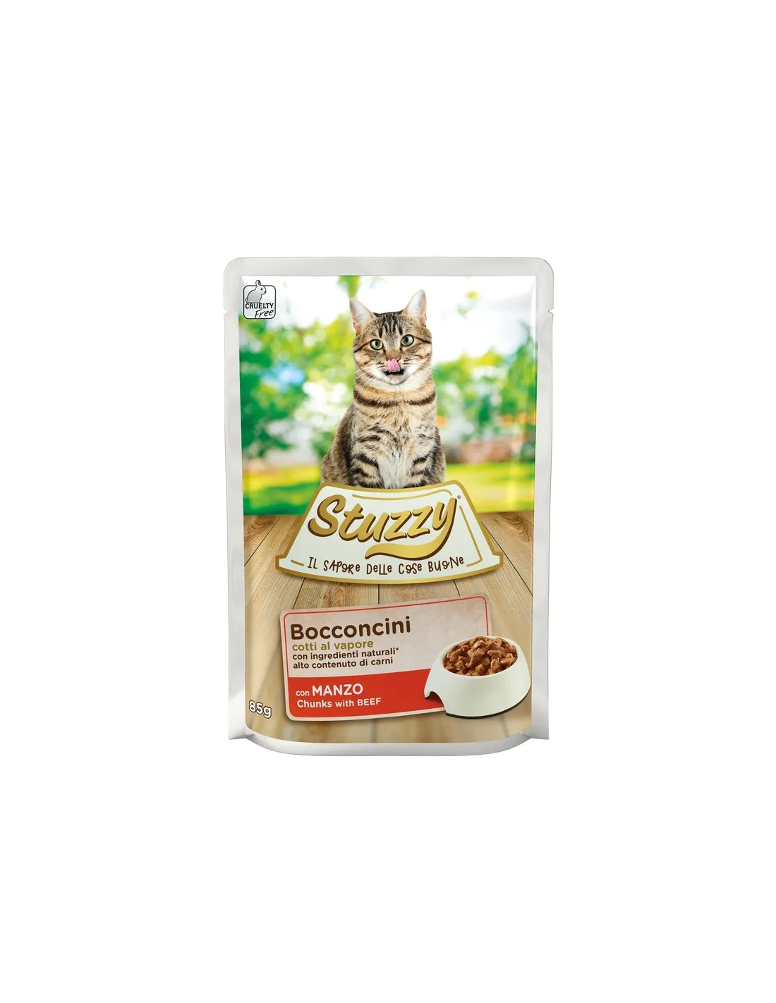 La composición de los Bocconcini con Carne de Res de Stuzzy ha sido cuidadosamente estudiada para garantizar una dieta completa y equilibrada. Contiene un 45% de carne y derivados, del cual un 8% es pura vacuno, ofreciendo así una excelente fuente de proteínas de alta calidad. Además, la presencia de subproductos de origen vegetal, como la inulina de achicoria (0,4%), ayuda a favorecer la salud intestinal del gato. Las sustancias minerales presentes aseguran un aporte equilibrado de elementos esenciales para el correcto funcionamiento del organismo felino.