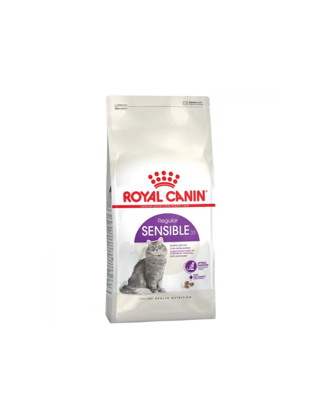 "Royal Canin Sensible 33 Cat" es un alimento seco formulado específicamente para gatos adultos con sistemas digestivos sensibles. Este producto está elaborado con ingredientes de alta calidad que aseguran una excelente digestibilidad y ayudan a mejorar el bienestar general del gato. Las croquetas están enriquecidas con proteínas de ave y arroz, ingredientes conocidos por su ligereza y facilidad de digestión. La fórmula está diseñada para favorecer una flora intestinal equilibrada y reducir los trastornos digestivos, garantizando a tu gato una dieta sana y equilibrada.