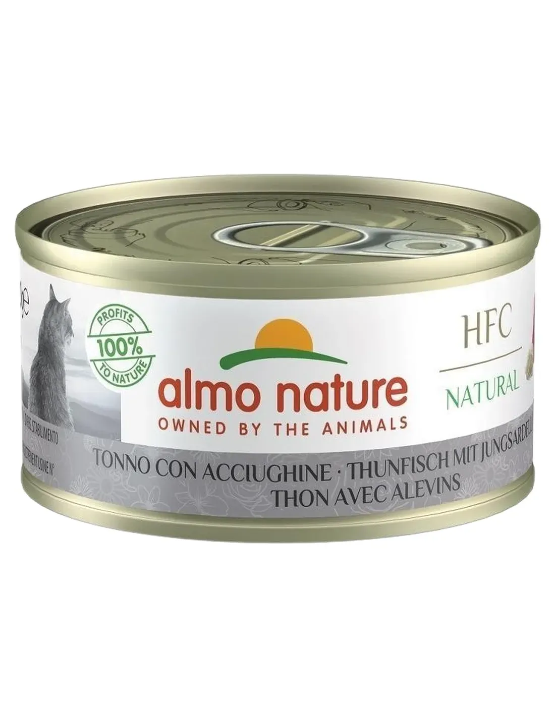 La calidad LEGENDARIA de Almo Nature es hoy aún más transparente: el acrónimo HFC certifica el origen de los ingredientes utilizados en la receta, originalmente apta para el consumo humano. Preparadas con pocos ingredientes y simplemente cocidas en caldo, las recetas con HFC son ideales para hidratar al gato de forma natural, gracias a su rico caldo de cocción. HFC Natural 70g: la lata más famosa de Almo Nature y su receta tradicional.