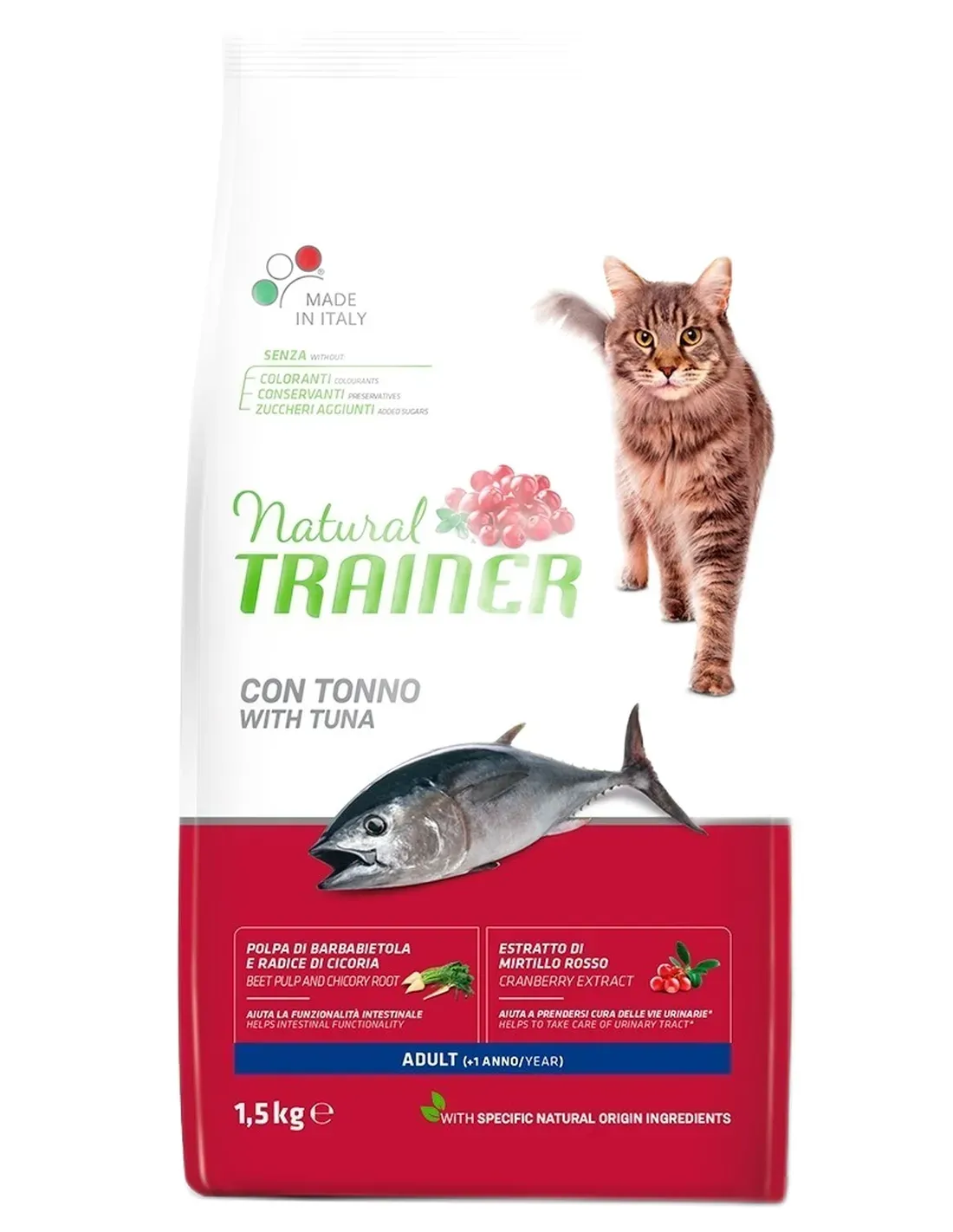 pollo fresco, arroz, maíz, proteína de maíz, proteínas deshidratadas de pollo y pavo, proteínas deshidratadas de atún 7%, grasa de origen animal, atún 4%, proteínas deshidratadas de vacuno, copos de maíz, pulpa de remolacha* 2,4%, Proteínas animales hidrolizadas, semillas de lino*, fibra de guisante*, sustancias minerales, extracto seco de raíz de achicoria (fuente de inulina)* 0,7%, levadura de cerveza, aceite de maíz, algas (Schizochytrium spp.)*, extracto seco de arándano rojo* 0,02%., *Ingredientes específicos de origen natural.