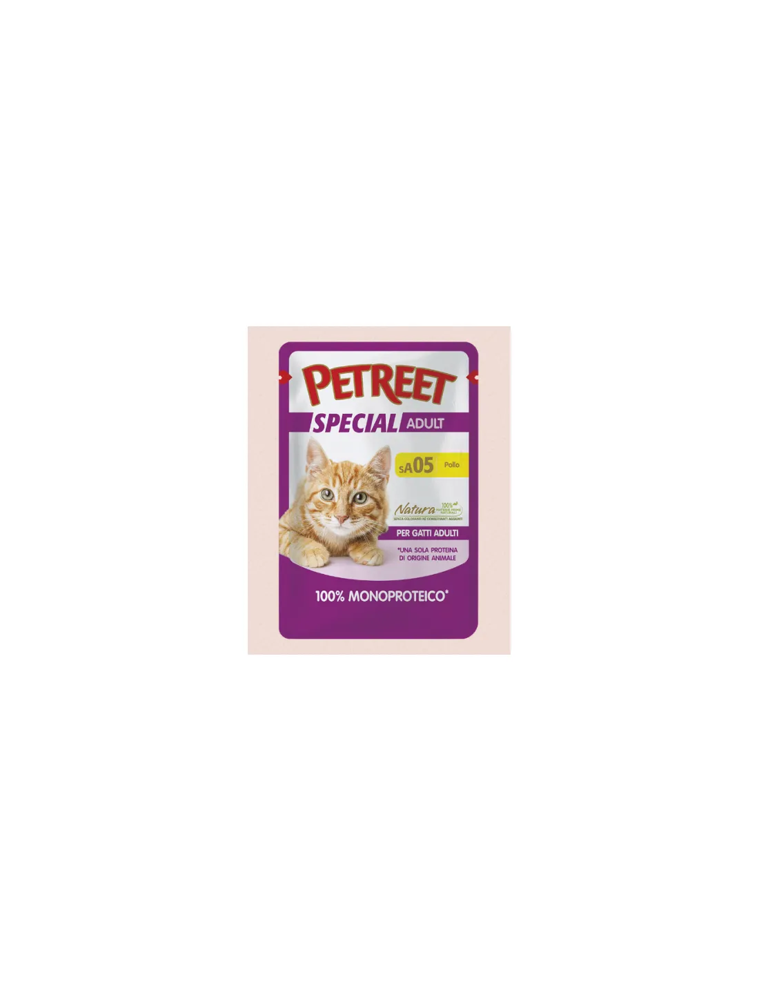 PETREET SA05 es un alimento complementario para gatos que ofrece una nutrición de alta calidad gracias a su composición monoproteica. Elaborado con pechuga de pollo de primera calidad, este producto se presenta en una forma cremosa y aterciopelada, lo que lo hace especialmente adecuado para gatos con dificultades para masticar. El formato de 70g es ideal para una sola ración, garantizando frescura y sabor en cada comida. La fórmula “100% POL” indica que el pollo es el ingrediente principal, asegurando una dieta natural libre de conservantes y colorantes artificiales, para el bienestar de tu felino.