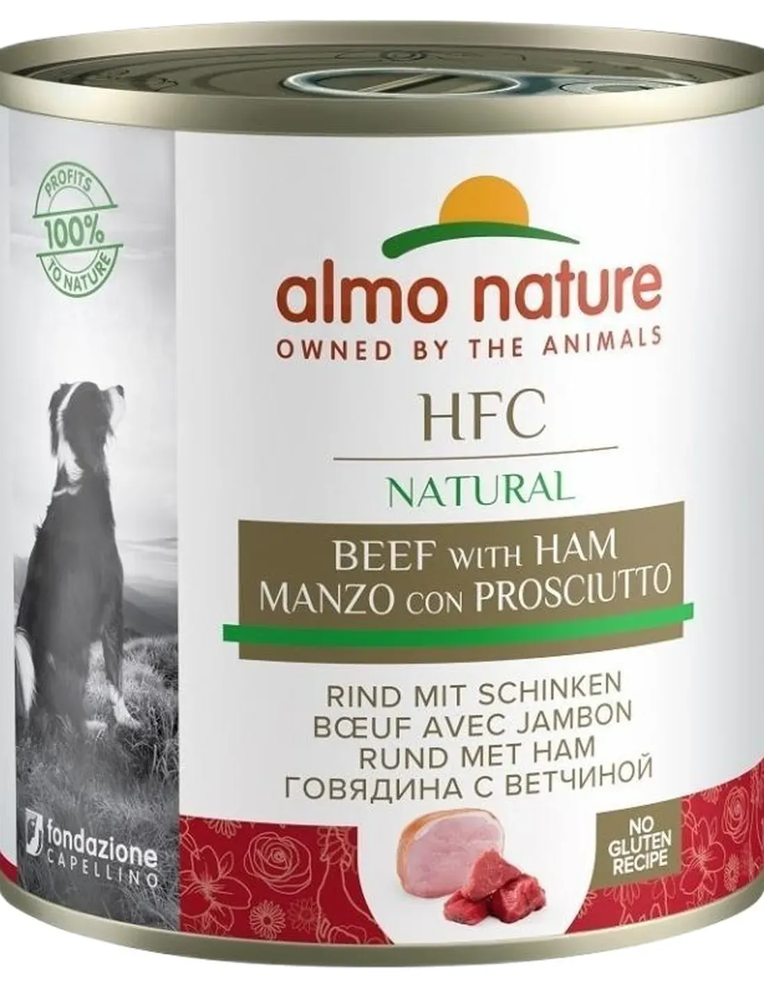 Almo Nature HFC Cocina Perro de ternera con jamón 290 gr (Ref. 8001154124330). Producto de calidad para el bienestar de tu animal.