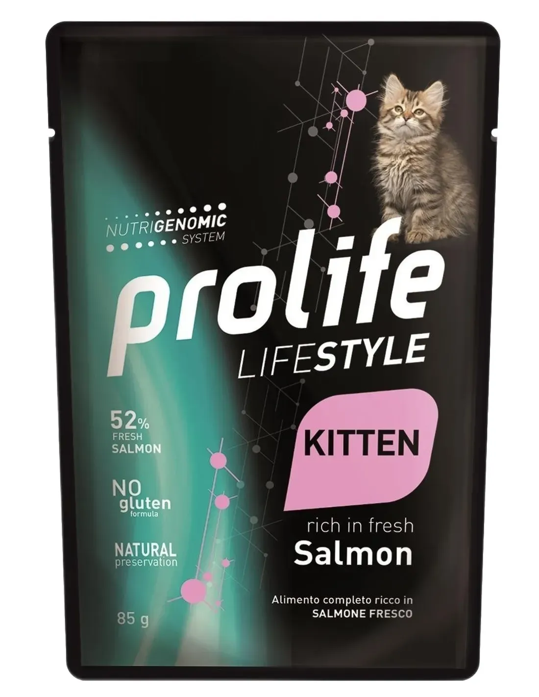 Prolife Lifestyle Kitten con Salmón es un alimento completo rico en Salmón Fresco para gatitos de 1 a 12 meses. Prolife Lifesyle es una mini línea con soluciones nutricionales ricas en pollo fresco o pescado fresco para responder con gusto a las necesidades de gatitos y gatos adultos.