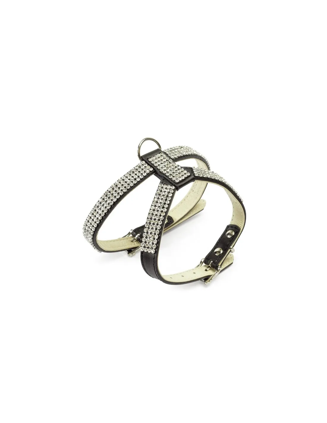 El arnés está elaborado con materiales de primera elección, asegurando resistencia y durabilidad en el tiempo. El cuero genuino utilizado es suave al tacto pero extremadamente duradero, capaz de soportar el estrés del uso diario. Los pedrería aplicados se fijan cuidadosamente para evitar que se desprendan fácilmente, manteniendo la apariencia lujosa del producto con el tiempo. El doble ajuste te permite personalizar el ajuste según las necesidades específicas del perro, ofreciendo un soporte adecuado sin restringir el movimiento.