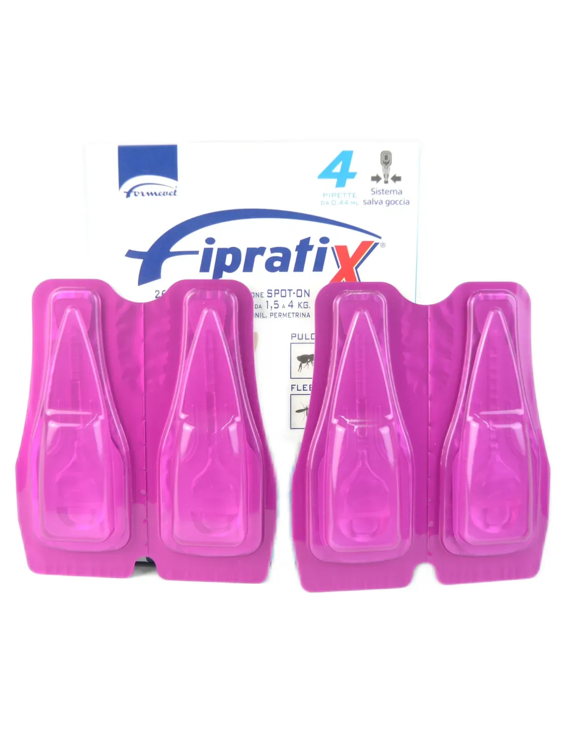 Cada pipeta contiene: fiprotix para perros de razas muy pequeñas (juguetes): butilhidroxianisol (e320) 0,088 mg; butilhidroxitolueno (e321) 0,044 mg fiprotix para perros de raza pequeña: butilhidroxianisol (e320) 0,22 mg; butilhidroxitolueno (e321) 0,11 mg fiprotix para perros medianos: butilhidroxianisol (e320) 0,44 mg; butilhidroxitolueno (e321) 0,22 mg fiprotix para perros de razas grandes: butilhidroxianisol (e320) 0,88 mg; butilhidroxitolueno (e321) 0,44 mg fiprotix para perros de raza gigante: butilhidroxianisol (e320) 1,32 mg; butilhidroxitolueno (e321) 0,66 mg.