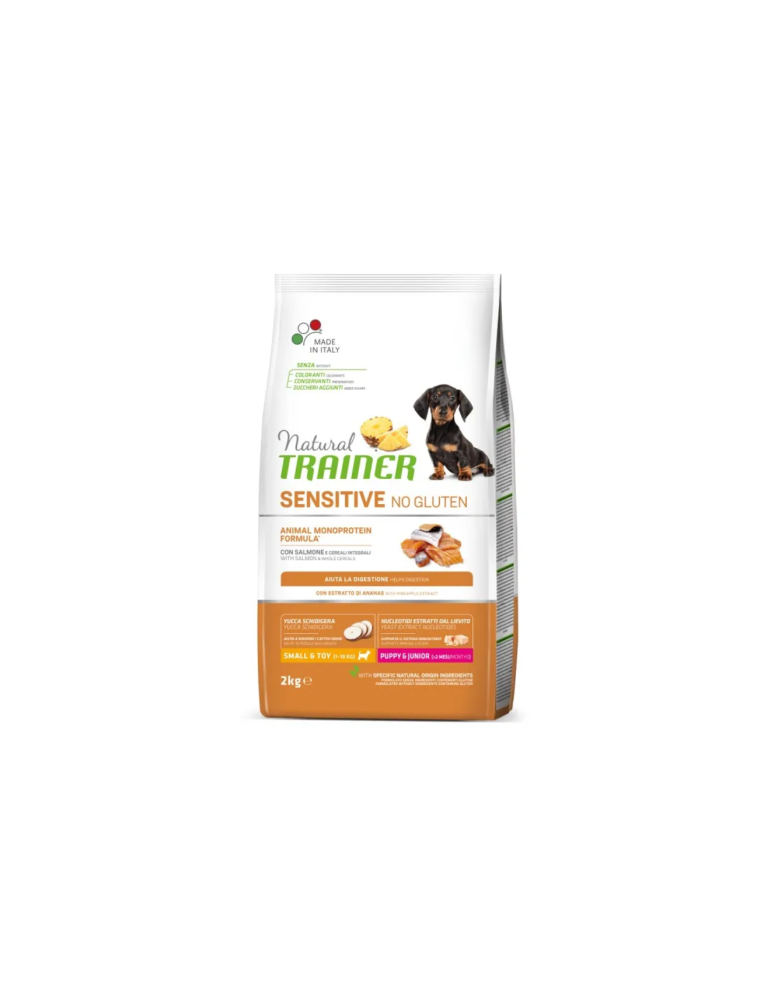 El producto "Natural Trainer Sensitive Sin Gluten Mini Puppy & Junior con Salmón 800g" es un alimento completo y equilibrado, formulado específicamente para cachorros de razas pequeñas y muy pequeñas. Es ideal para quienes presentan intolerancias alimentarias o alergias. Este alimento no contiene gluten y utiliza salmón como única fuente de proteína animal, ofreciendo una alternativa a las fuentes tradicionales de proteínas.