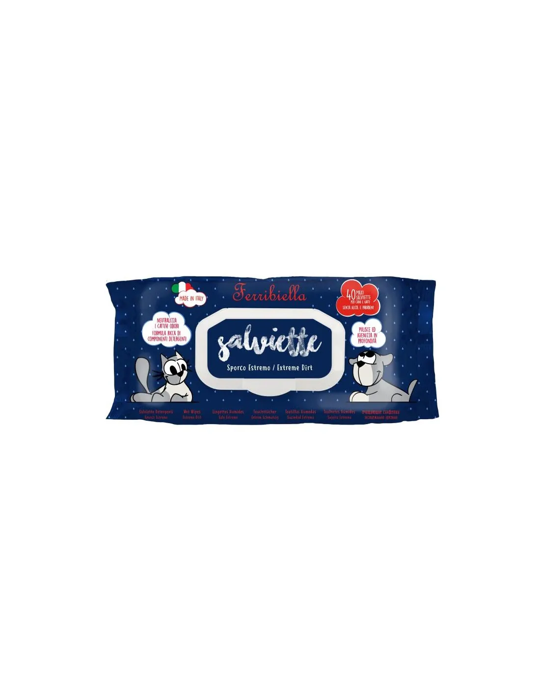Las Toallitas Limpiadoras Extreme Dirty para Perros y Gatos de Ferribiella son una solución práctica y eficaz para mantener la limpieza de tus mascotas, especialmente cuando se encuentran en condiciones de suciedad intensa. Este producto, que contiene 40 unidades por paquete, ha sido formulado específicamente para combatir los residuos más rebeldes y neutralizar los malos olores, dejando el pelaje limpio y fresco.