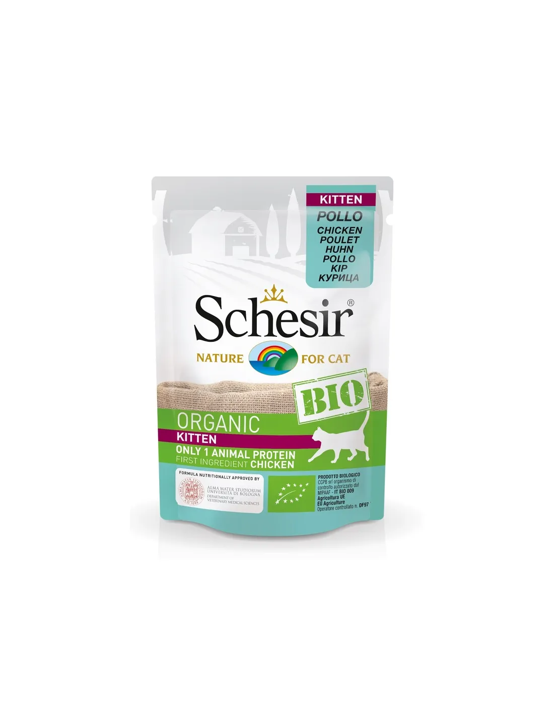 Schesir gato BIO con pollo 85g representa la excelencia en la nutrición felina, ofreciendo un alimento húmedo completo y equilibrado, certificado ecológico por DE-OKO. Este producto ha sido cuidadosamente formulado para satisfacer las necesidades nutricionales de los gatos, prestando especial atención a la calidad y origen de los ingredientes. La presencia de una sola fuente de proteína animal, el pollo, posicionado como primer ingrediente, garantiza una alta digestibilidad y un aporte óptimo de proteínas.