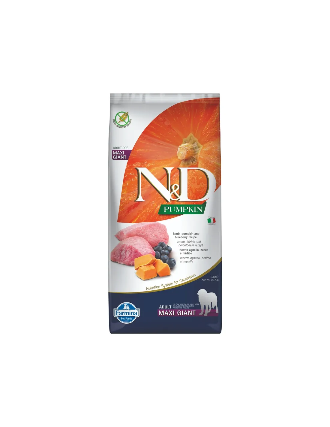 Farmina N&D Prime Grain Free Adult Medium Maxi Cordero y Arándano está indicado para perros adultos de tamaño mediano y grande que requieran una dieta libre de cereales. Es especialmente adecuado para perros con intolerancias alimentarias o sensibilidades digestivas, gracias a la presencia de cordero como fuente de proteínas de fácil digestión y de arándanos como apoyo antioxidante.