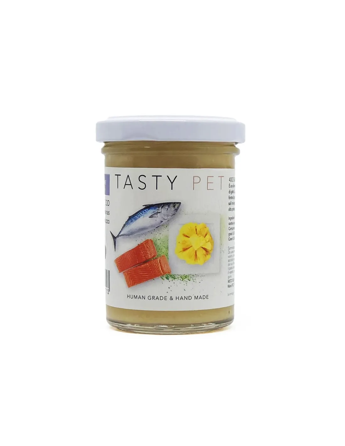 La receta de TASTY PET Salmón y Piña para Gatos ha sido cuidadosamente diseñada para proporcionar un alimento complementario de alta calidad. Los ingredientes principales incluyen salmón, bacalao y pescado azul, valiosas fuentes de proteínas y ácidos grasos esenciales. Las zanahorias aportan un toque de dulzura natural y son ricas en betacaroteno, mientras que la piña añade un sabor exótico y aporta sus propiedades antiinflamatorias. Se utiliza maicena y sorbato potásico para garantizar la correcta consistencia y conservación del producto.